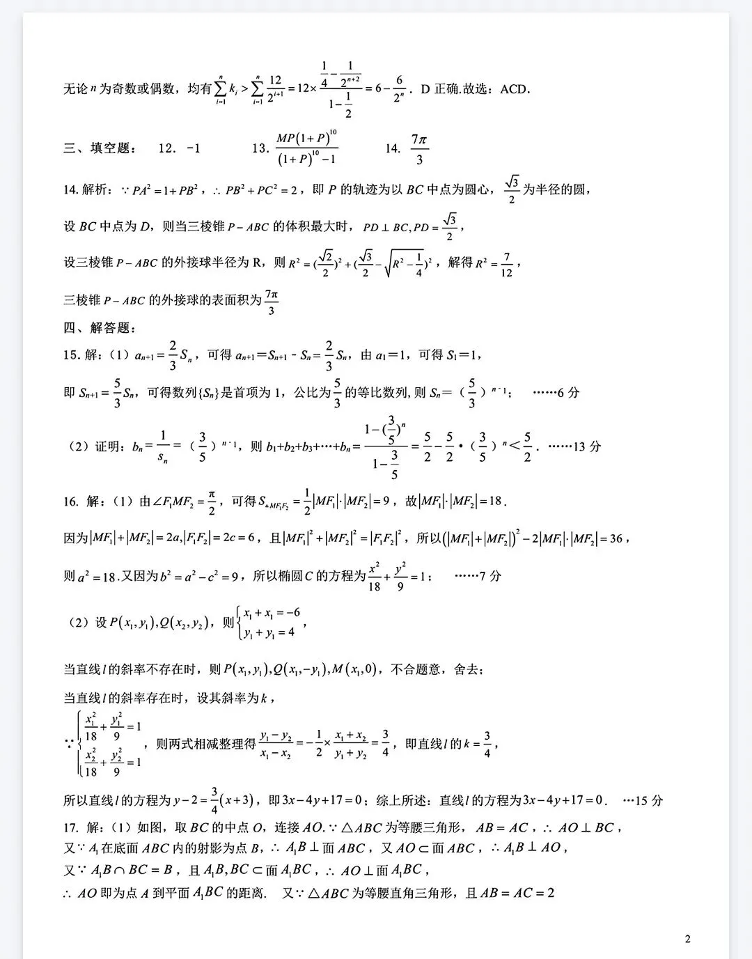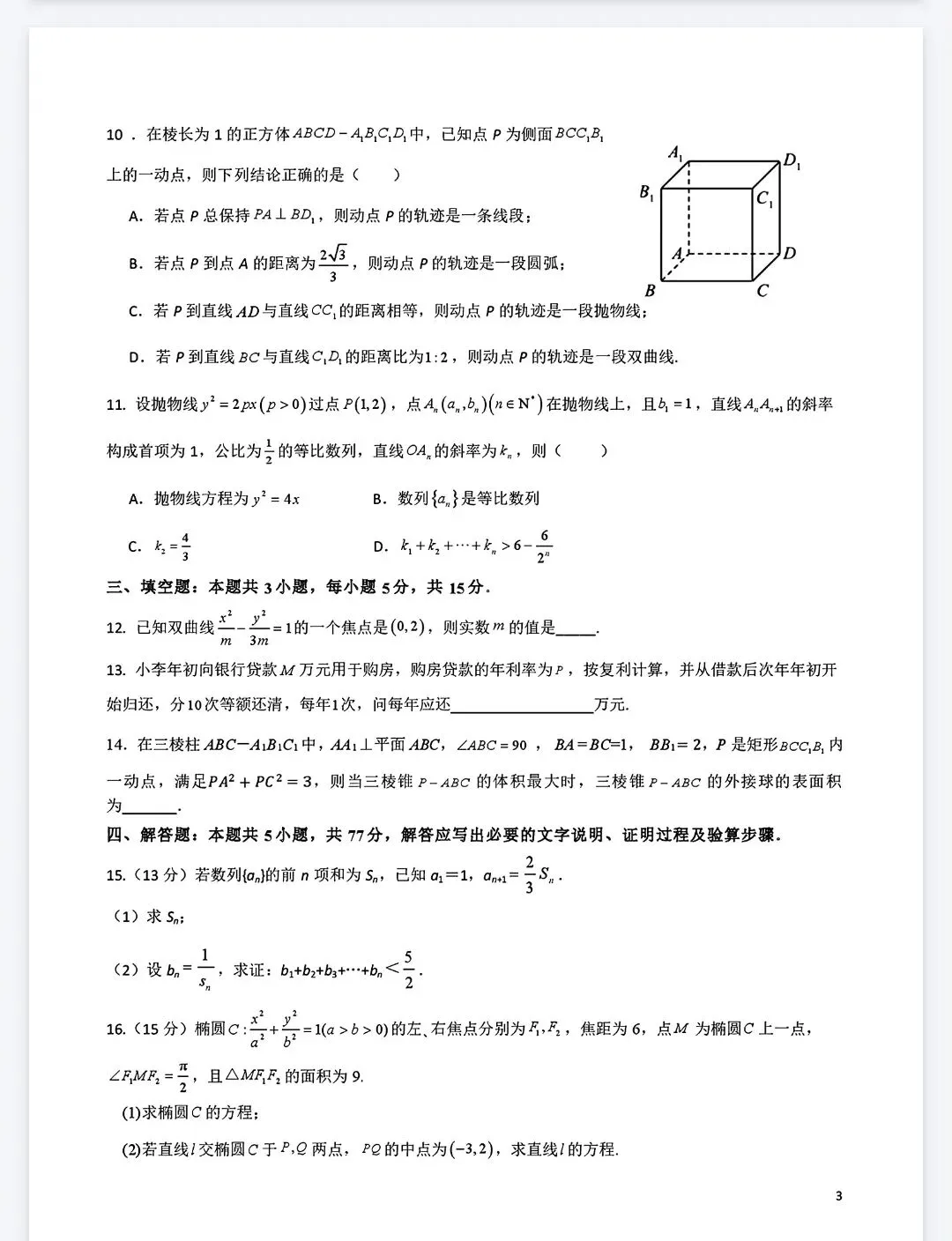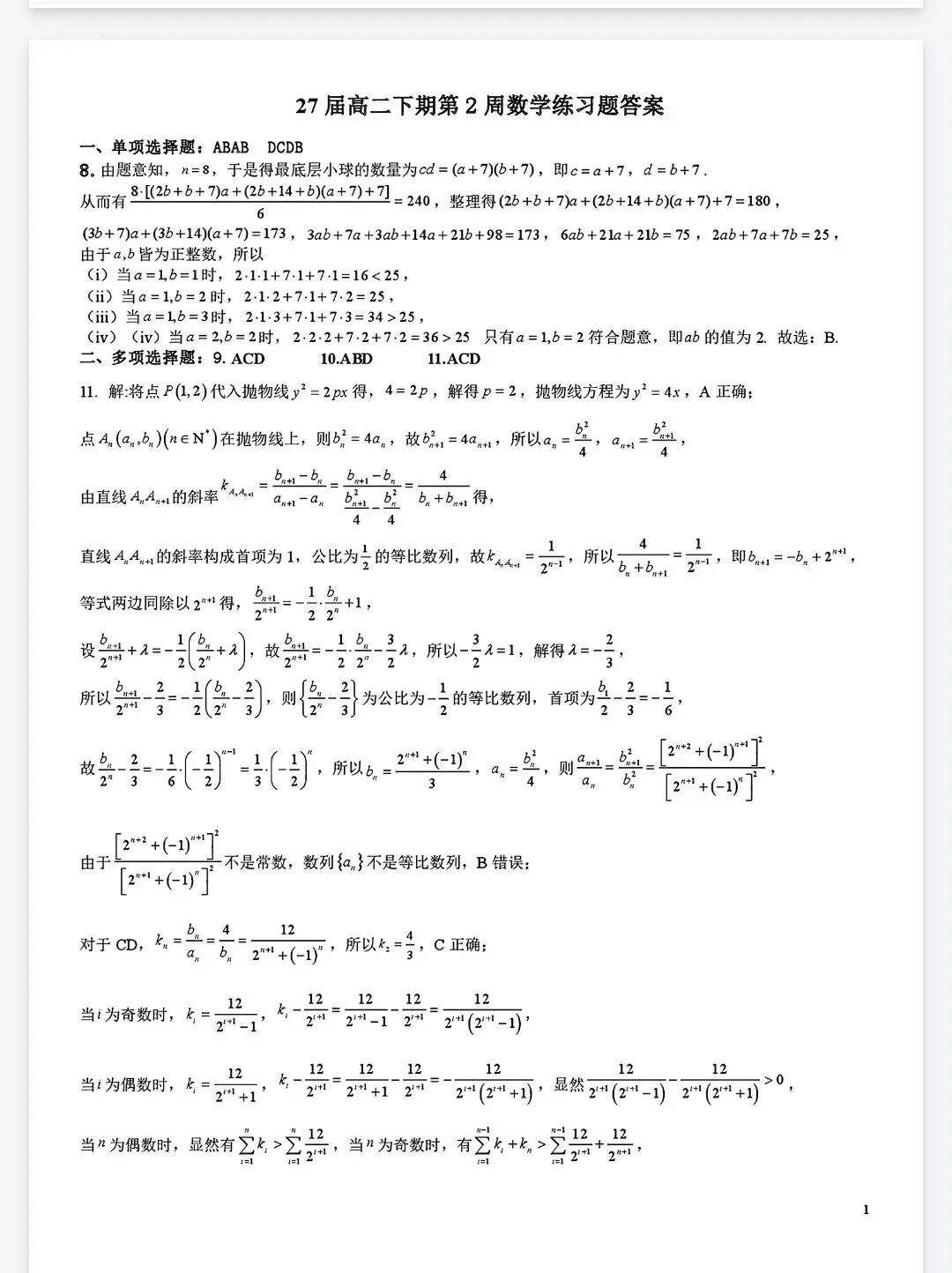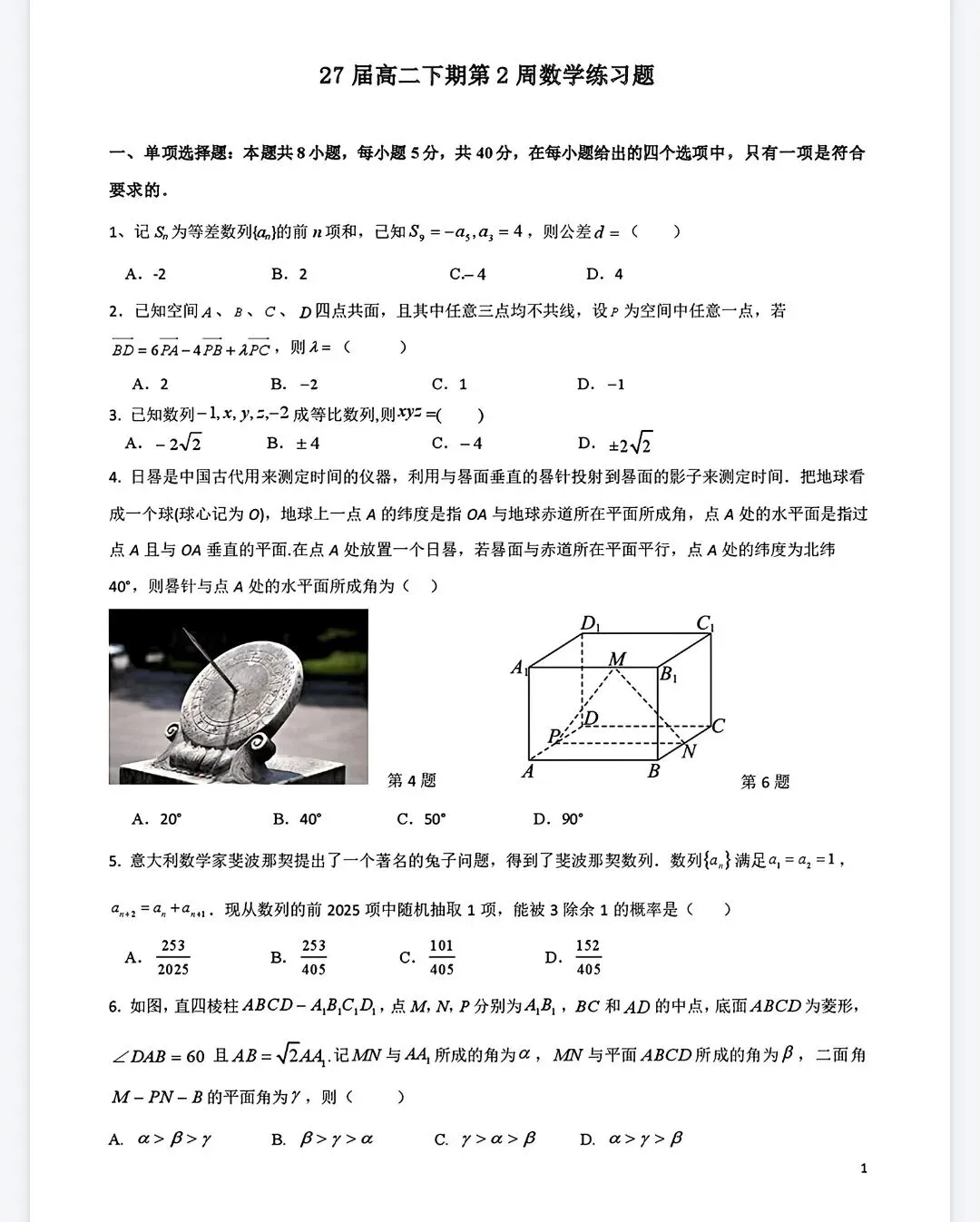 成都七中2027届高二下第2周考数学试卷+答案+下载