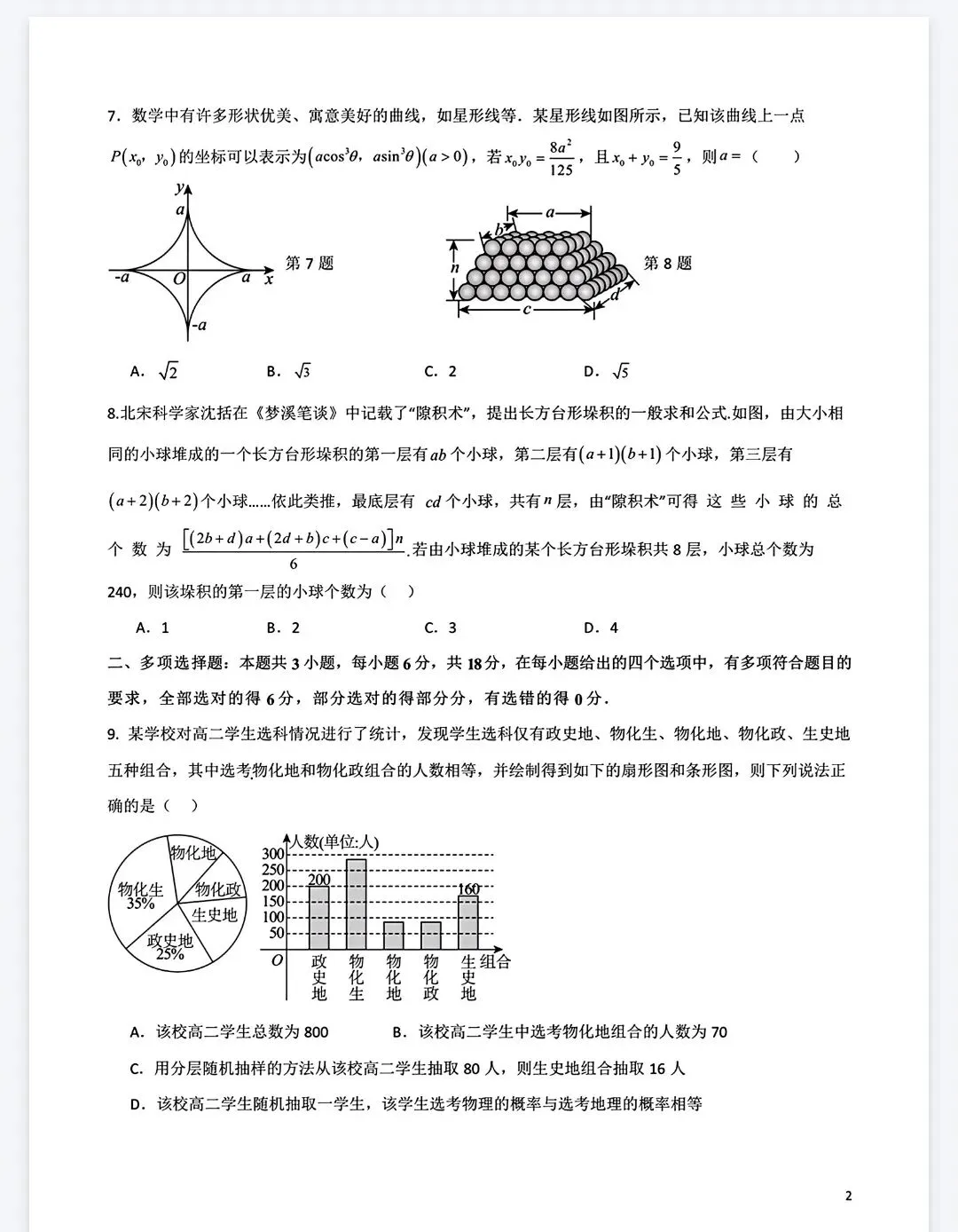 >成都七中2027届高二下第2周考数学试卷+答案+下载