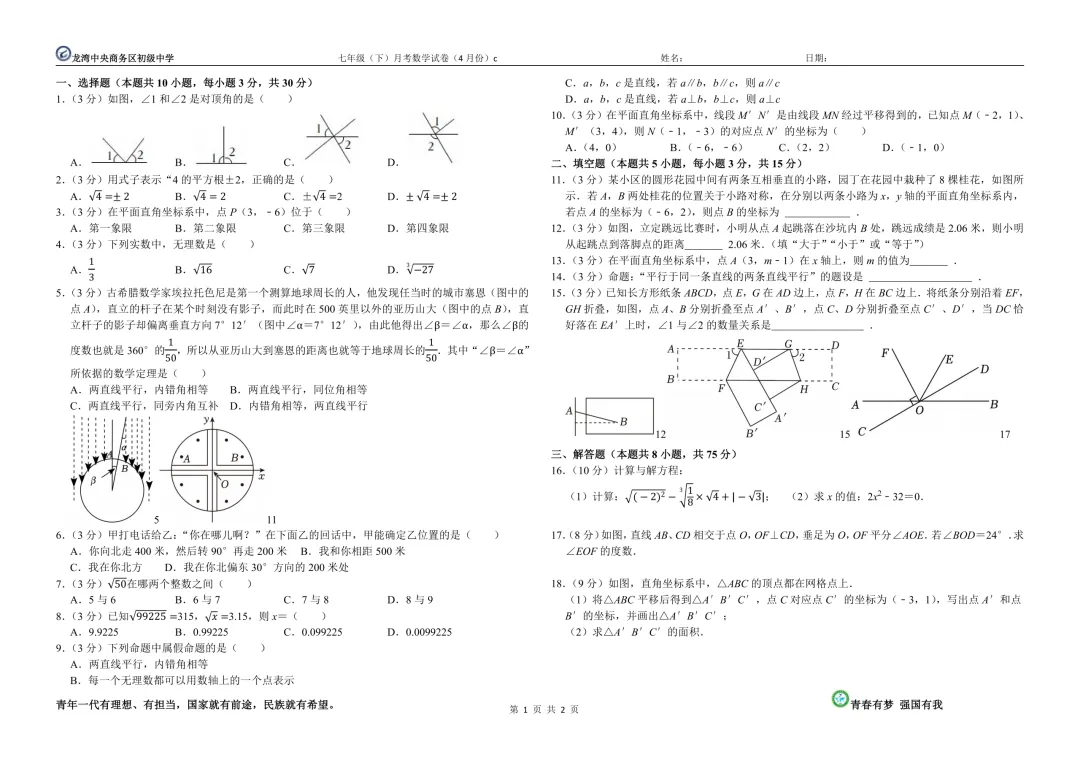 初三试卷!2026年3月沈阳南昌中学【语/数/英/物/化】试卷!可下载电子版!