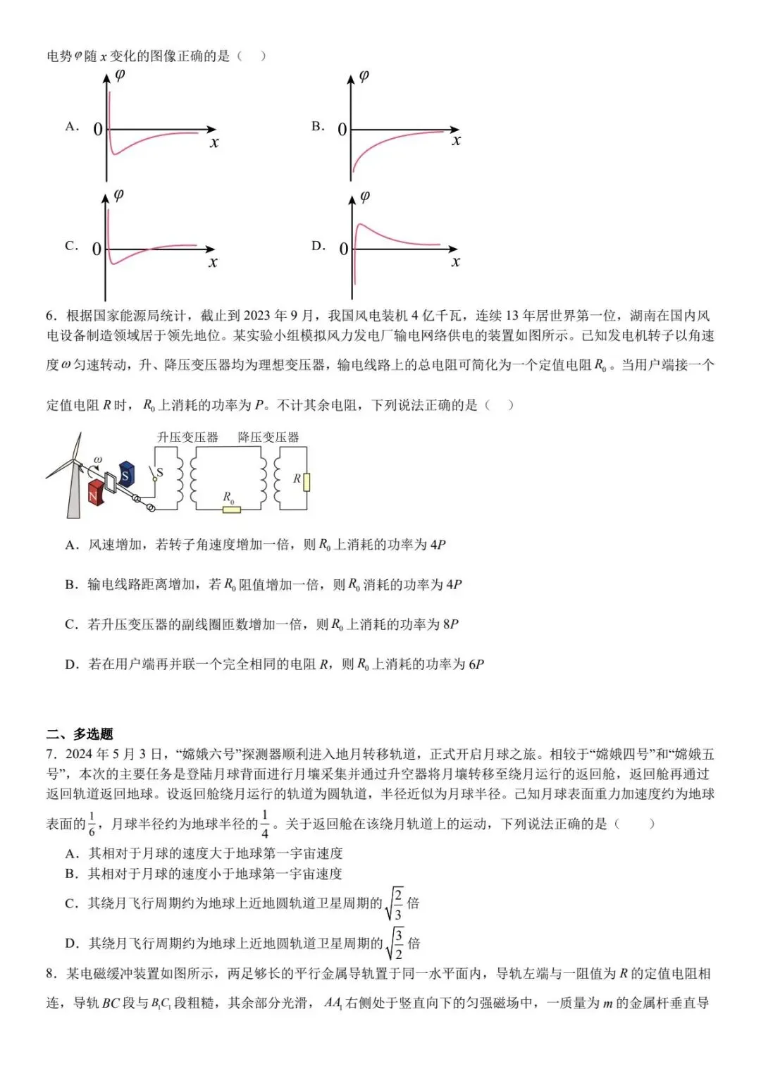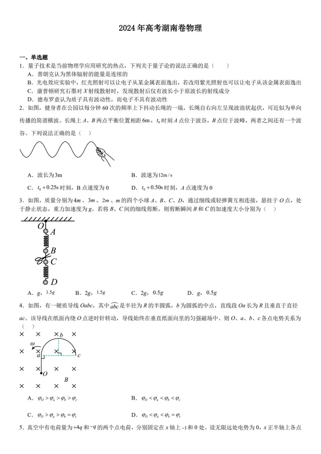 >2024年高考湖南卷物理真题原卷和解析及各科历年真题