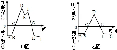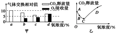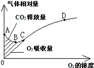 1.甲、乙两图都表示苹果组织细胞中CO2释放量和O2吸收量的变化。下列相关叙述不正确的是()A. 甲图中氧浓度为a时的情况对应的是乙图中的A点B. 甲图中氧浓度为b时,若CO2释放量为6mol和O2吸收量为4mol,则此时有氧呼吸占优势C. 甲图的a、b、c、d四个浓度中,c是适合储藏苹果的氧浓度D. 甲图中氧浓度为d时没有酒精产生2.将某种绿色植物的叶片,放在特定的实验装置中研究,在10℃、20℃的温度条件下,分别置于5klx、10klx光照和黑暗条件下,进行光合作用和细胞呼吸。结果如图所示(横坐标:时间;单位:小时)。对以上结果分析正确的是,该叶片( )A. 10℃时的呼吸速率是20℃时的2倍B. 在10℃、10klx的光照下,每小时光合作用产生的氧气量是4.5mgC. 在5klx光照下,10℃时积累的有机物比20℃时少D. 在20℃、5klx光照下,每小时光合作用产生的氧气量是5mg3.已知某植物叶肉细胞光合作用和呼吸作用的最活温度分别为25℃和30℃,如图表示该植物叶肉细胞在光照强度分别为a、b、c、d,温度为25℃时。单位时间内叶肉细胞CO2释放量和叶绿体O2产生量的变化。下列分析错误的是( )A. 光照强度为a时,该植物不能进行光合作用B. 光照强度为b时,该植物叶肉细胞的光合速率等于呼吸速率C. 光照强度为c时,该植物叶肉细胞的净光合积累量大于零D. 若只将温度调高到30℃,则图中d对应的柱状体高度一定会下降4.以CO2的吸收速率与释放速率为指标,研究温度对某植物光合作用与细胞呼吸的影响(其余实验条件均适宜),结果如表,下列对该表数据分析正确的是()A. 植物细胞呼吸速率与温度表现为负相关B. 该植物光合作用对温度的敏感性比细胞呼吸高C. 昼夜不停地光照,该植物生长的最适宜温度是30℃D. 在恒温条件下,每天光照、黑暗各12小时,25℃时该植物积累的有机物最多5.如图是进行“绿叶中色素的提取和分离”实验的几个主要操作步骤。操作顺序正确的是( )A. 乙→丁→甲→丙B. 乙→甲→丁→丙C. 甲→乙→丁→丙D. 乙→丙→甲→丁6.如图所示酵母菌呼吸作用与氧气浓度的关系。B点对应的氧气浓度为X,此时,CO2释放量相对值为0.6,O2吸收量相对值为0.4.下列说法正确的是()A. C点时无氧呼吸与有氧呼吸的速率相等B. AC段表示仅进行无氧呼吸C. 氧气浓度X时,无氧呼吸消耗葡萄糖的相对值是有氧呼吸的1.5倍D. 氧气浓度X时,无氧呼吸消耗葡萄糖的相对值是有氧呼吸的2倍7.鲫鱼能够在寒冷、缺氧的水环境中生存数天。其细胞呼吸过程如图所示。下列叙述错误的是( )A. 鲫鱼细胞无氧呼吸的终产物可以是乳酸或者酒精和CO2B. 鲫鱼细胞无氧呼吸时葡萄糖中的能量大部分以热能散失C. 骨骼肌细胞有氧呼吸和无氧呼吸过程均需要线粒体参与D. 图示两种细胞线粒体中与呼吸作用有关的酶不完全相同8.如图为某绿色植物在生长阶段体内细胞物质的转变情况,有关叙述正确的是( )A. 图中用于合成ATP的能量形式是化学能B. 由③到④的完整过程,由线粒体完成C. 该绿色植物的所有活细胞都能完成图示全过程D. 图中①、③、④过程都能产生ATP9.如图表示的是一昼夜北方某作物植株CO2吸收量的变化。甲图为盛夏的某一晴天,乙图为春天的某一晴天。对两图的相关原因分析正确的是( )A. 甲乙图中有机物积累最多的都是D点B. 适当提高温度可以减小OA的绝对值C. 两图中DE时间段引发CO2吸收量下降的原因相同D. 甲图中E点与G点相比,叶绿体中的ATP合成速率更快10.如图是某同学用无水乙醇分别提取正常光照和强光照下某种植物等量叶片中的光合色素,然后用层析液进行纸层析得到的结果(Ⅰ、Ⅱ、Ⅲ、Ⅳ为色素条带)。下列相关叙述正确的是( )A. 与正常光照下相比,该植物强光照下叶片会发黄B. 实验中对研磨液过滤时,采用滤纸过滤,实验效果更好C. 色素分离过程中如果滤液细线触及层析液,会缩短四条色素带间的距离D. 研磨操作时若加入的二氧化硅或碳酸钙过少,都会导致色素条带颜色变深11.如图表示需氧呼吸过程,下列有关说法正确的是( )A. ①③④中数值最大的是①B. ②代表的物质名称是氧气C. 产生①③的场所是线粒体D. 原核生物中也有能完成图示全过程的生物12.从池塘一定深度采取水样,分别等量装于透光白瓶和不透光黑瓶中。测定初始含氧量m0后,将样瓶悬浮于水体某深度4小时。测得白瓶和黑瓶的含氧量分别为m1和m2。下列叙述不正确的是()A. m1-m2为植物在4h内制造的O2量,可以代表真正光合作用强度B. 将白瓶中自养生物过滤烘干,4h前后干重之差可代表净光合作用强度C. m0-m2是黑瓶中生物呼吸消耗的O2量,可用来代表呼吸作用强度D. 若黑瓶中生物的细胞呼吸强度与白瓶相同,则该方法没有实验误差13.将一长势良好的健壮植株在密闭玻璃罩内培养并置于室外。测定玻璃罩内CO2浓度在某一天的变化情况,绘成曲线如图甲所示。图乙表示该植株处于光照下的叶肉细胞,其中a和b表示气体量。据图分析错误的是()A. BC段较AB段CO2浓度增加速率减慢的原因是温度降低,细胞呼吸减弱B. 若D点和E点所对应时刻的温度相同,则两时刻的光照强度大小为D<EC. E点之后CO2浓度增加的主要原因是植物的呼吸作用增强D. 假设该植株所有进行光合作用的细胞的光合强度一致,图乙表示该植株的一个进行光合作用的细胞,那么,当在图甲中D点时,图乙中a<b14.如图为人体运动强度与血液中乳酸含量和氧气消耗速率的关系(以糖类为呼吸底物),下列说法正确的是A. ab段为需