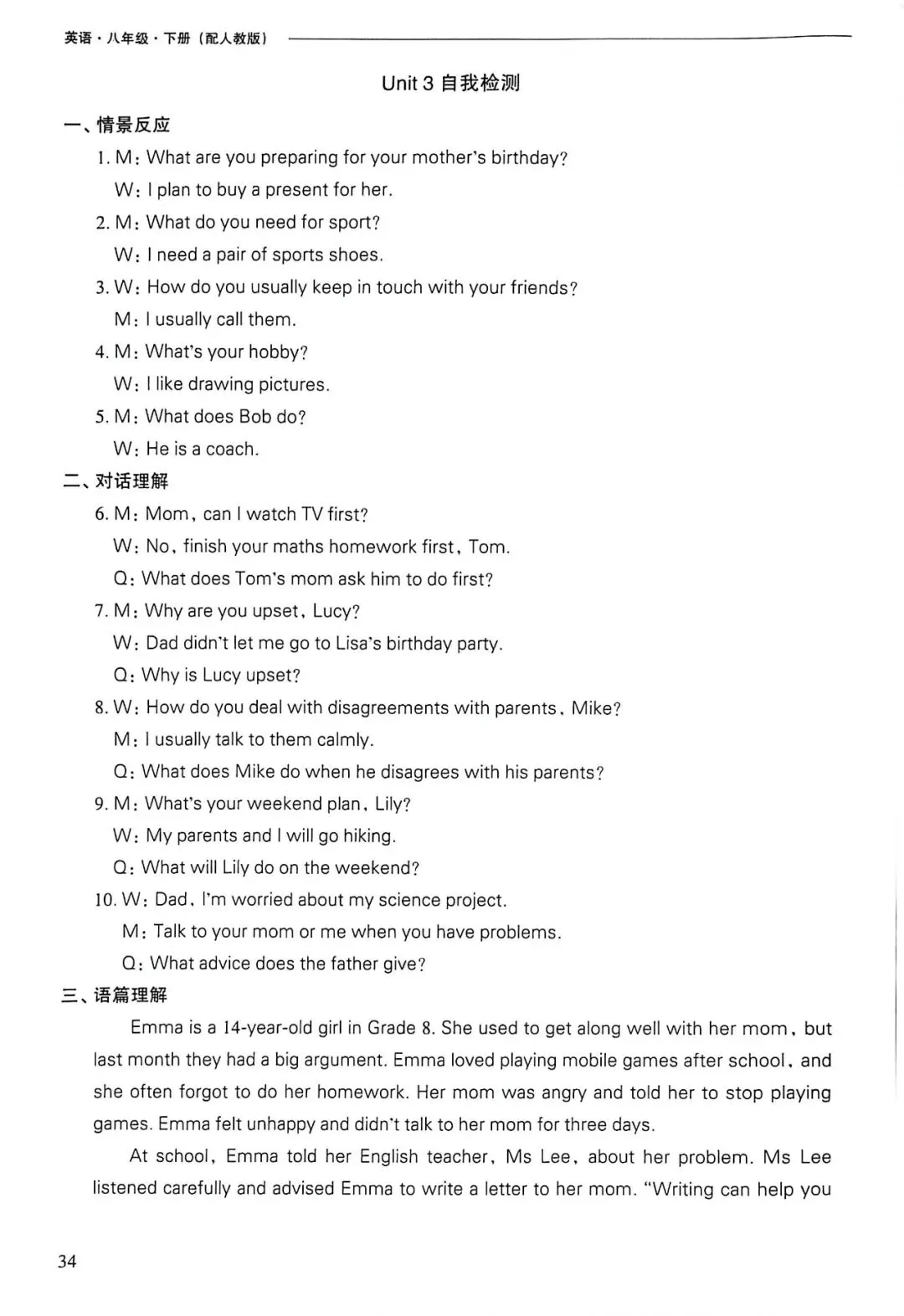 >【新人教】八下导学Unit 3听力+试卷+听力材料