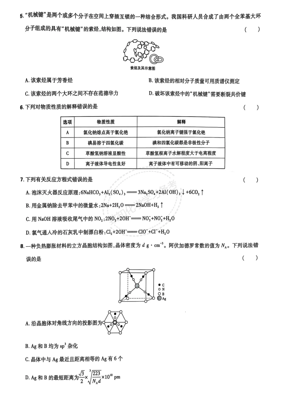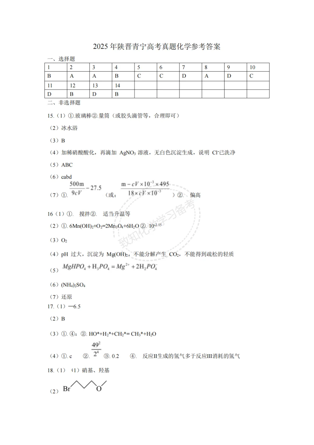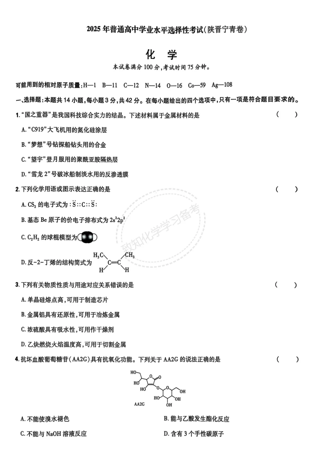 >2025年陕晋宁青高考化学试卷及答案