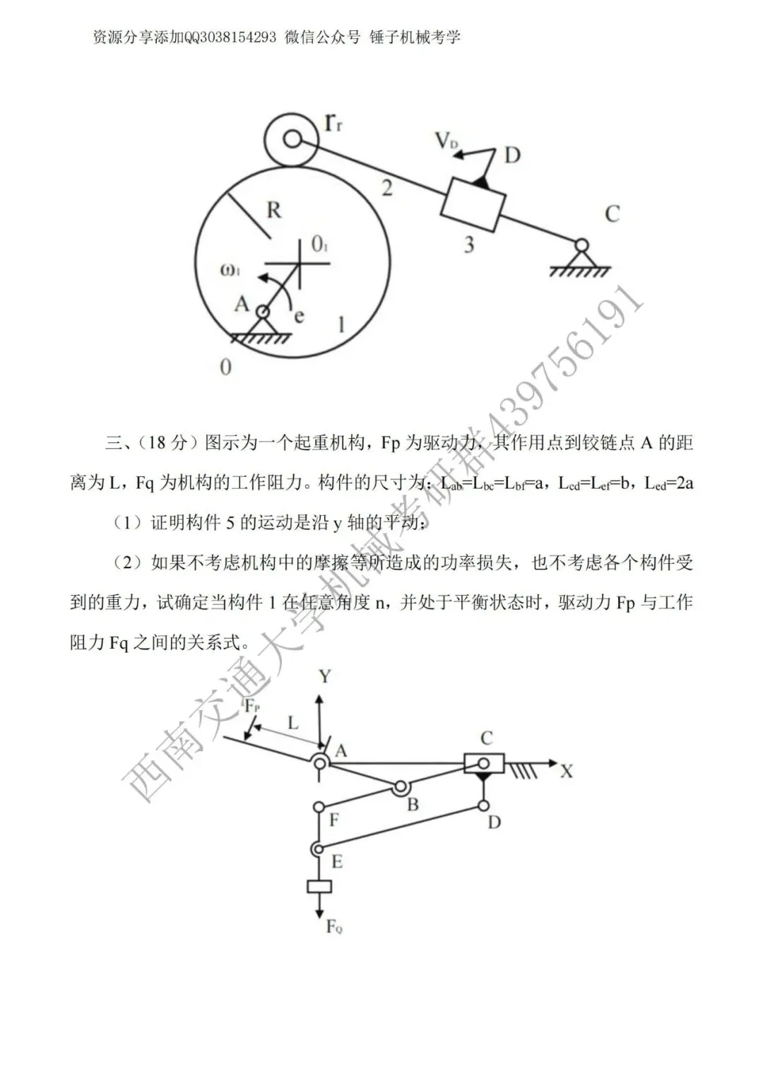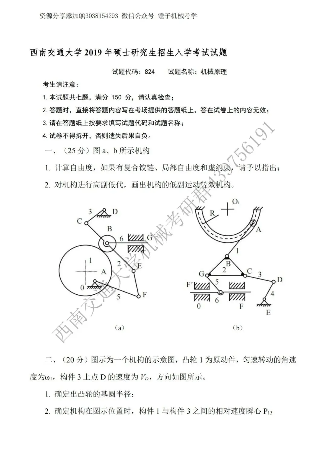>【考研真题】2019年西南交通大学(824机械原理)考研真题公布