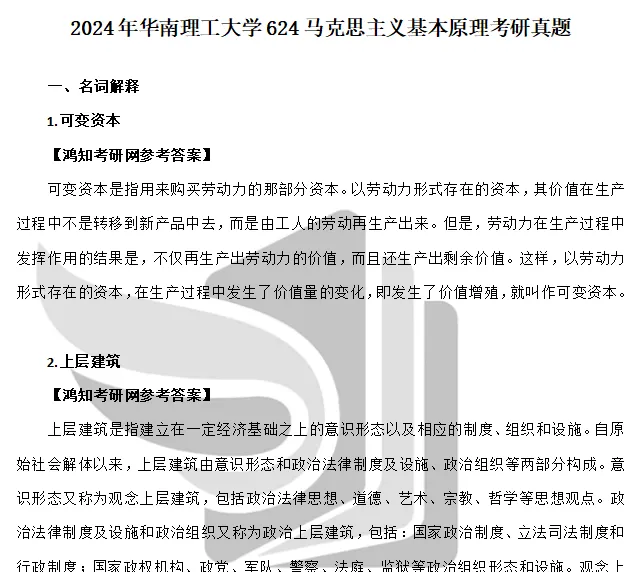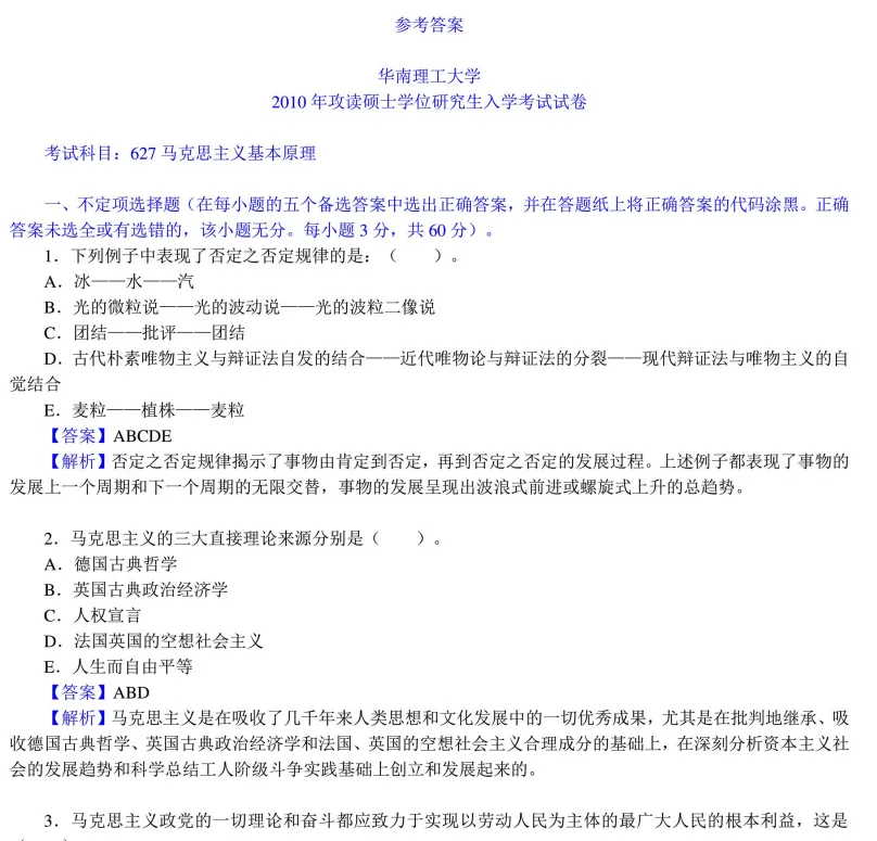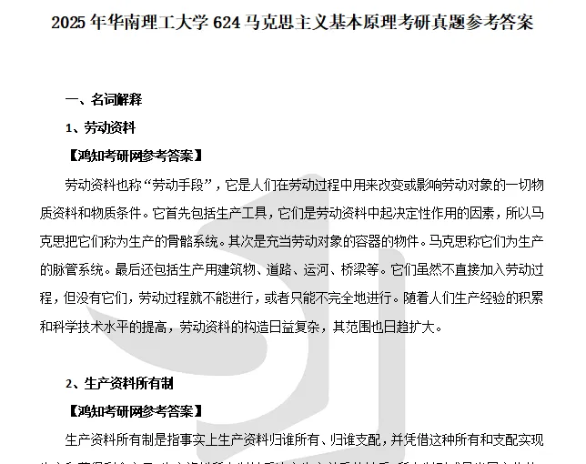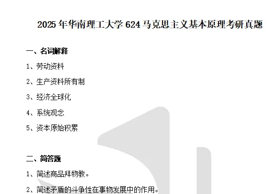 2010-2012,2019-2026年华南理工大学624马克思主义基本原理考研真题答案详解