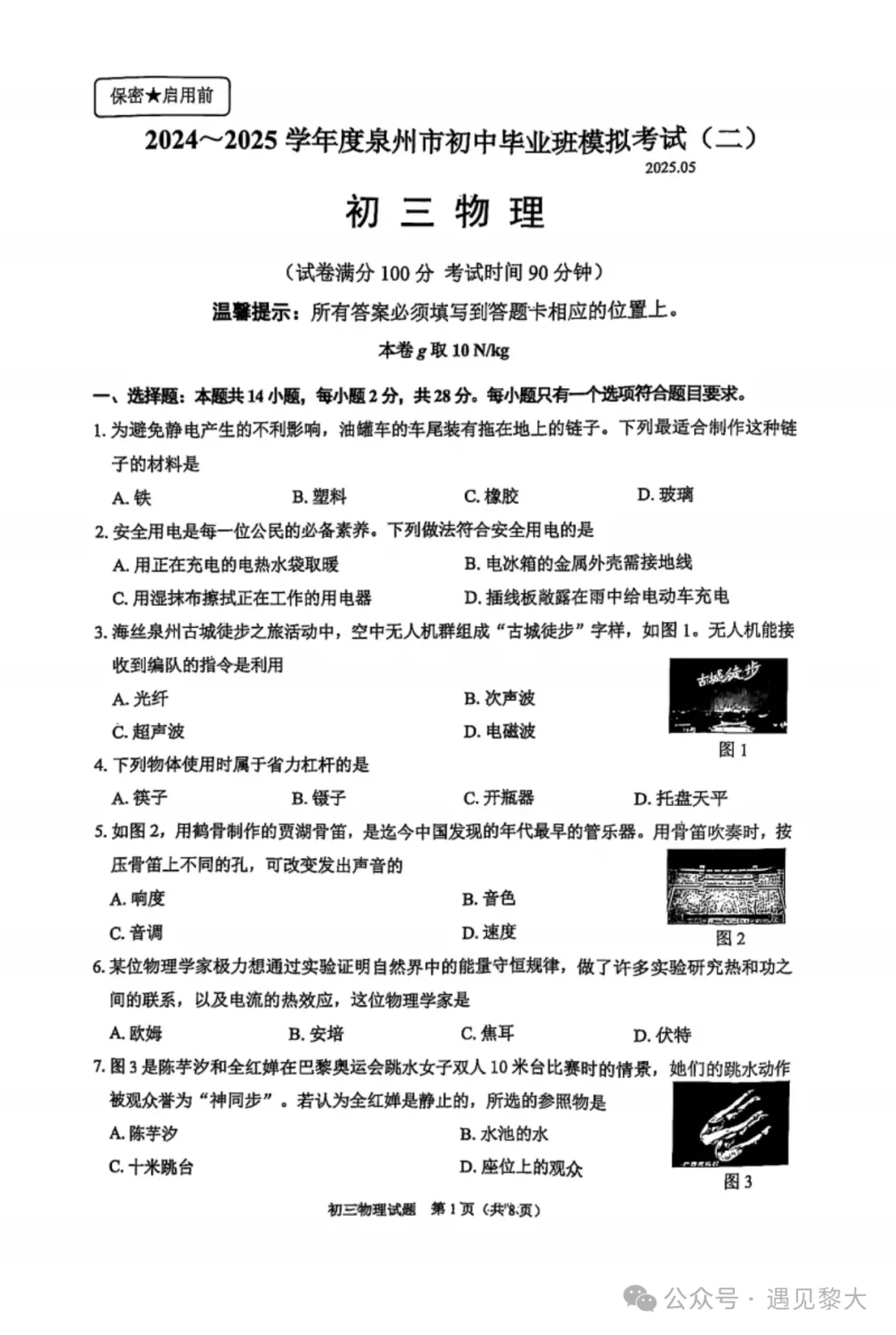 >【试卷分享】2025泉州初三二检物理、化学试卷及答案解析