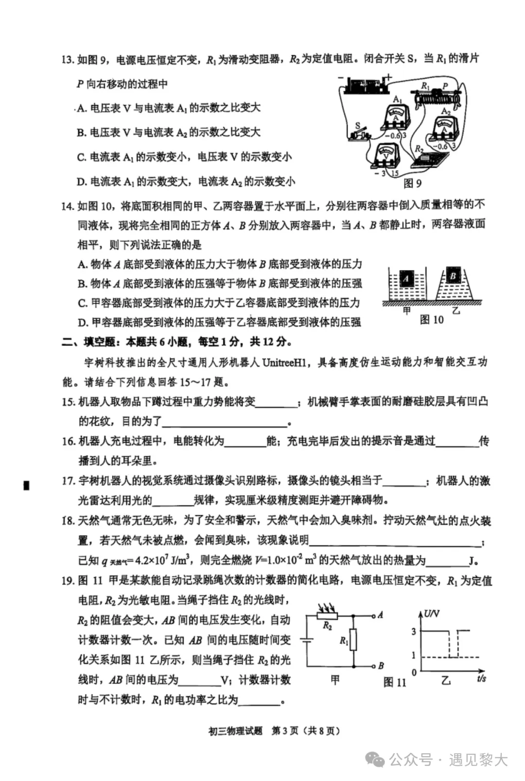 2025泉州初三二检物理试卷