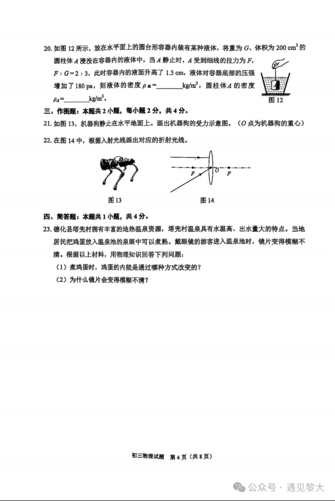 【试卷分享】2025泉州初三二检物理、化学试卷及答案解析