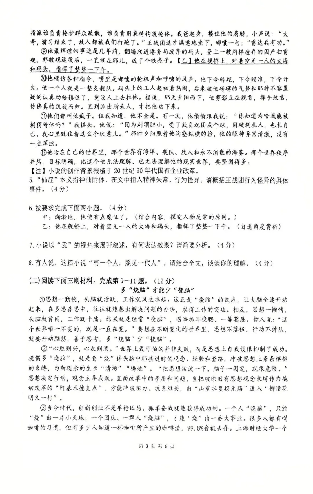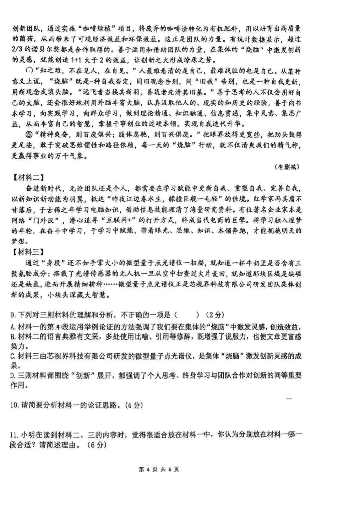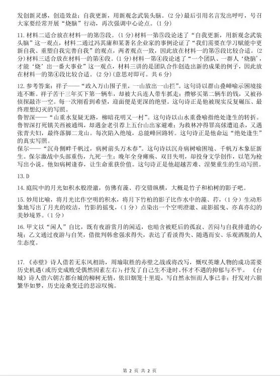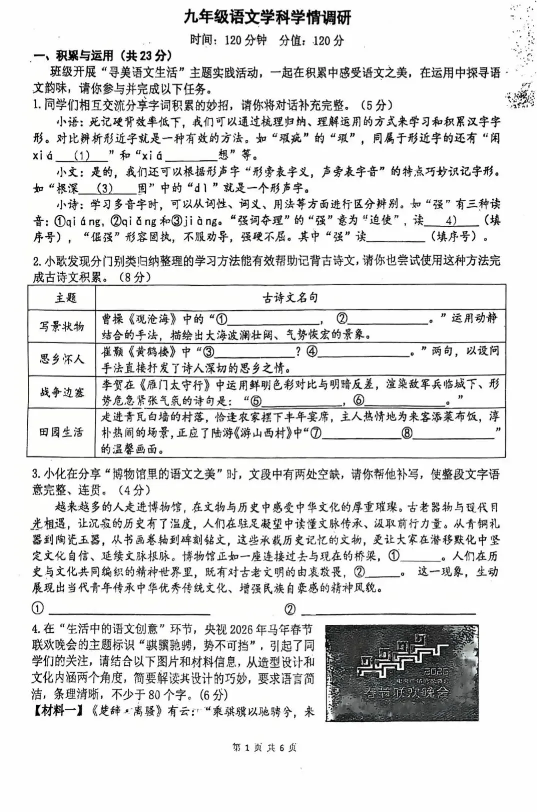 >2026学年郑外九年级调研语文试卷及答案