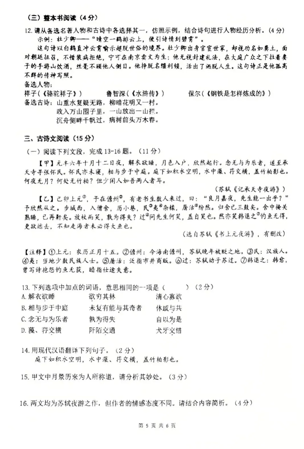 2026学年郑外九年级调研语文试卷及答案