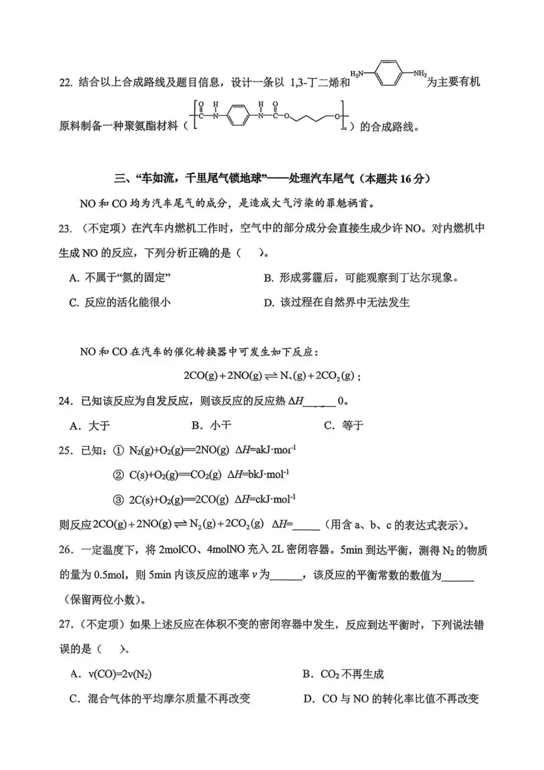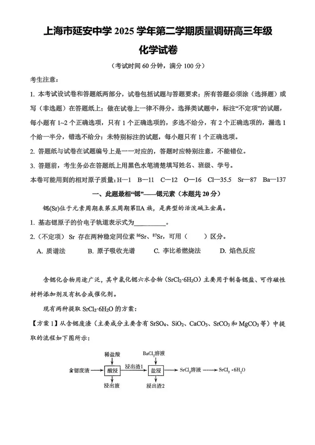 >【SH高中四校八大试卷群更新】上海市延安中学2025-2026学年高三下学期3月质量调研化学