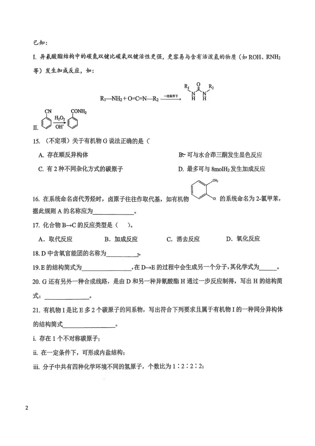 【26化学考研复试真题】专业英语第2题:常见反应名称的汉译英