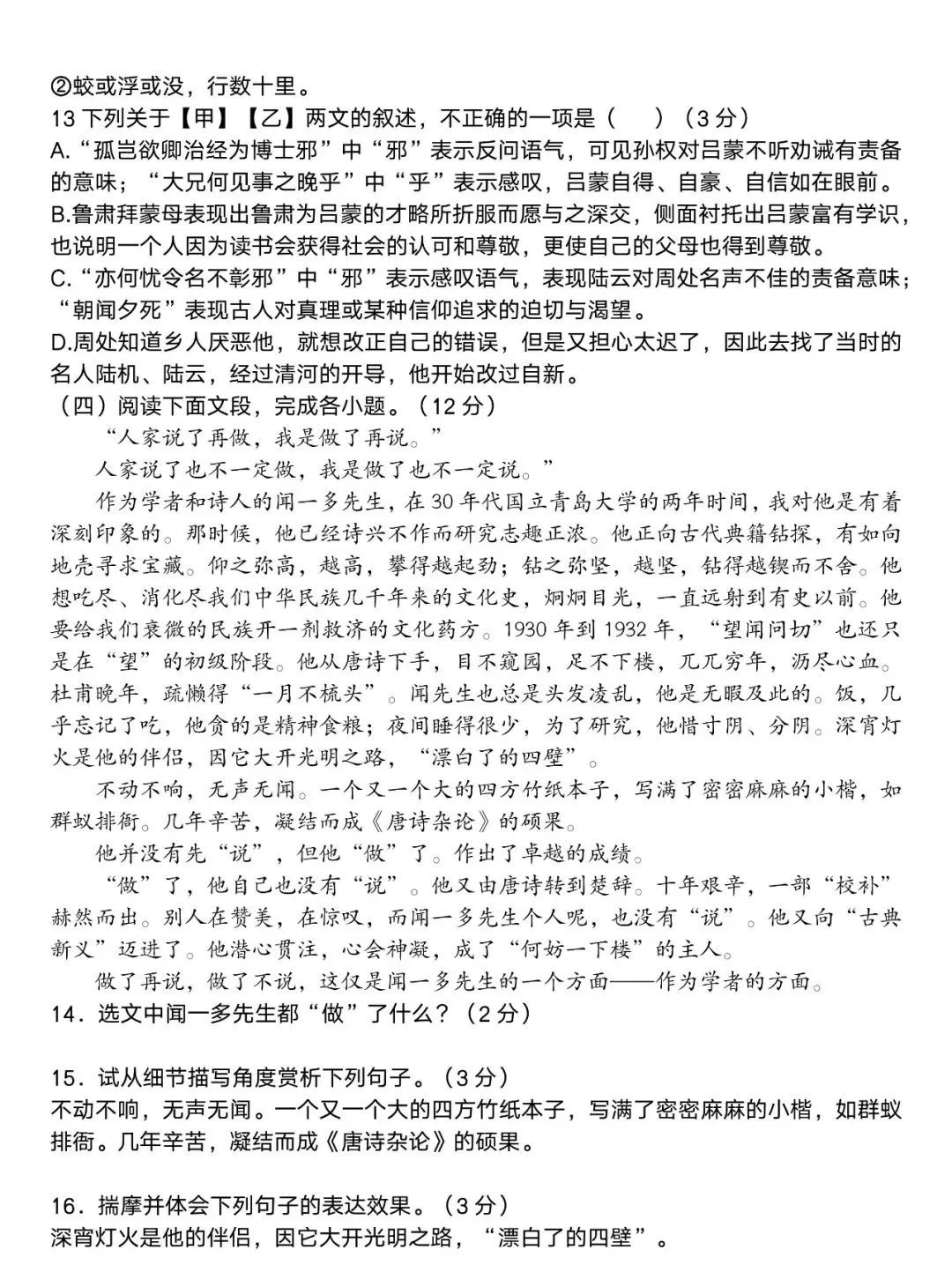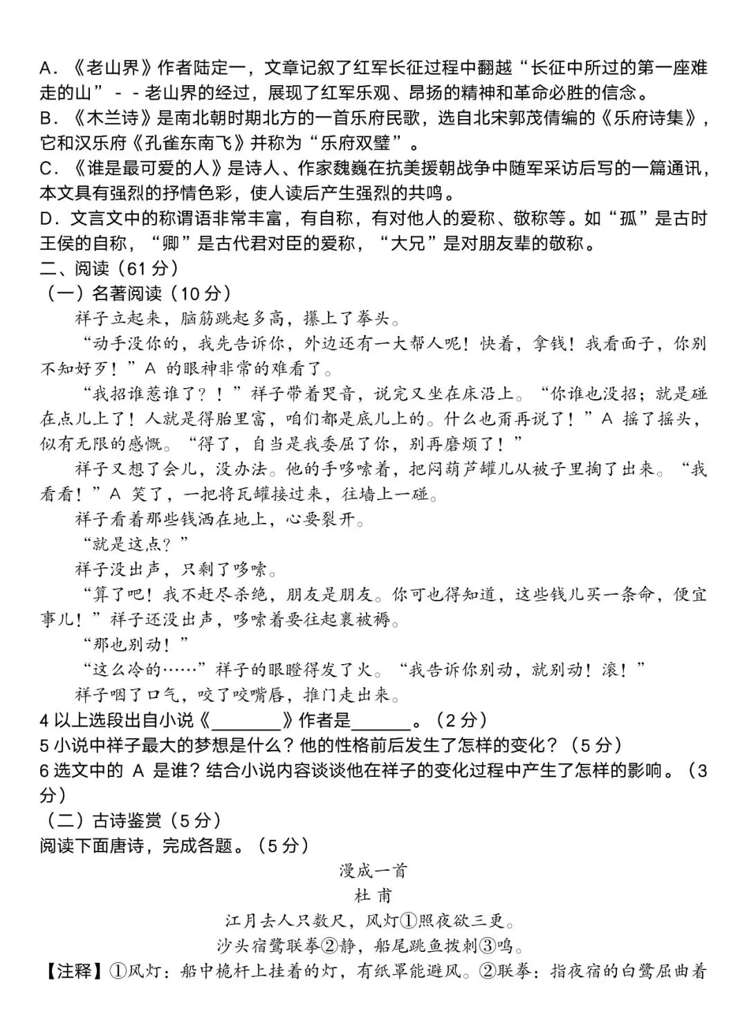 2026学年郑外九年级调研语文试卷及答案