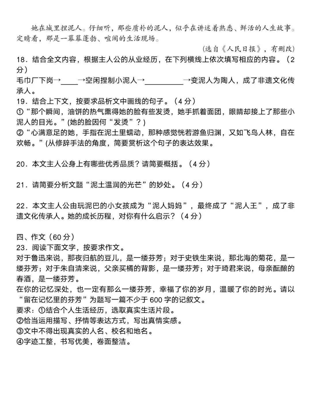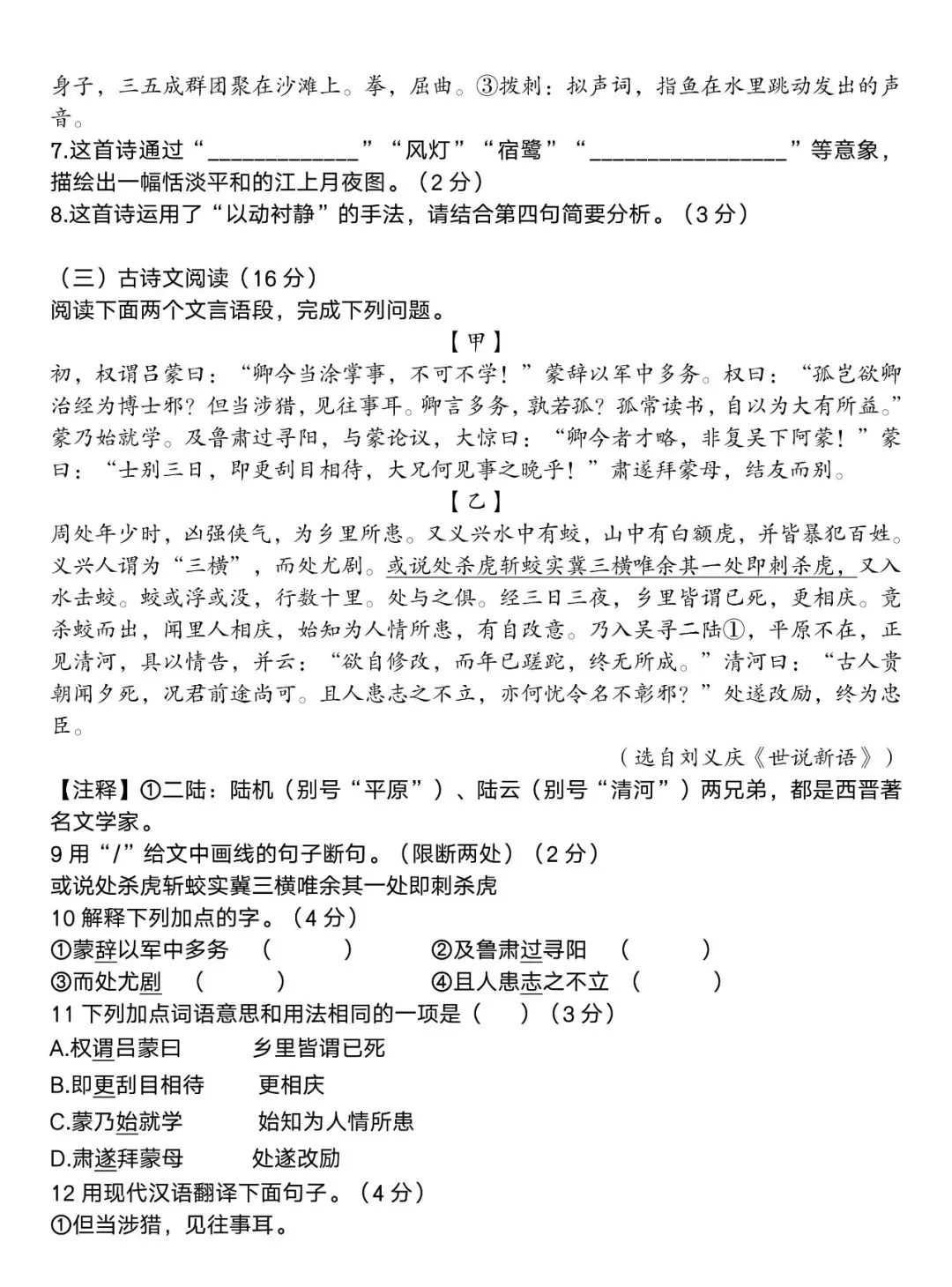 七年级语文下册第一次月考试卷+答案2