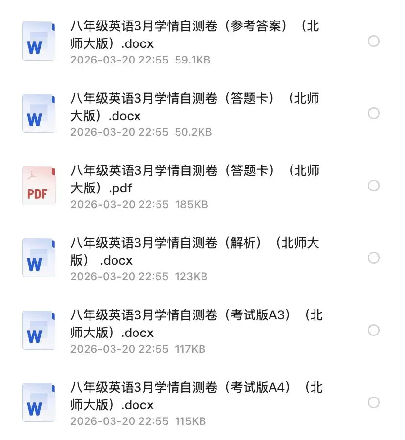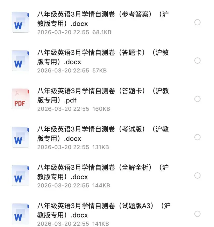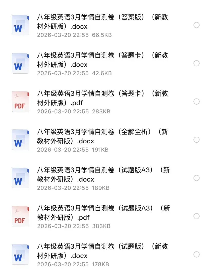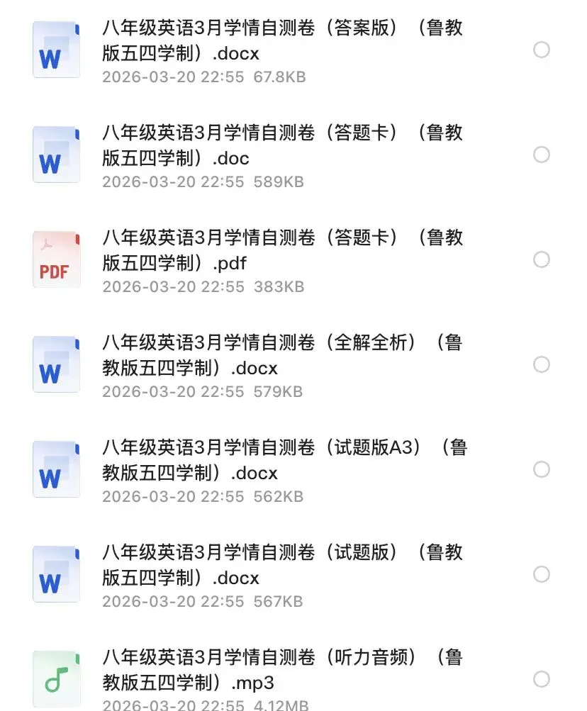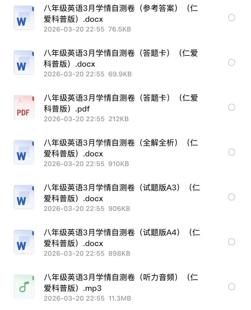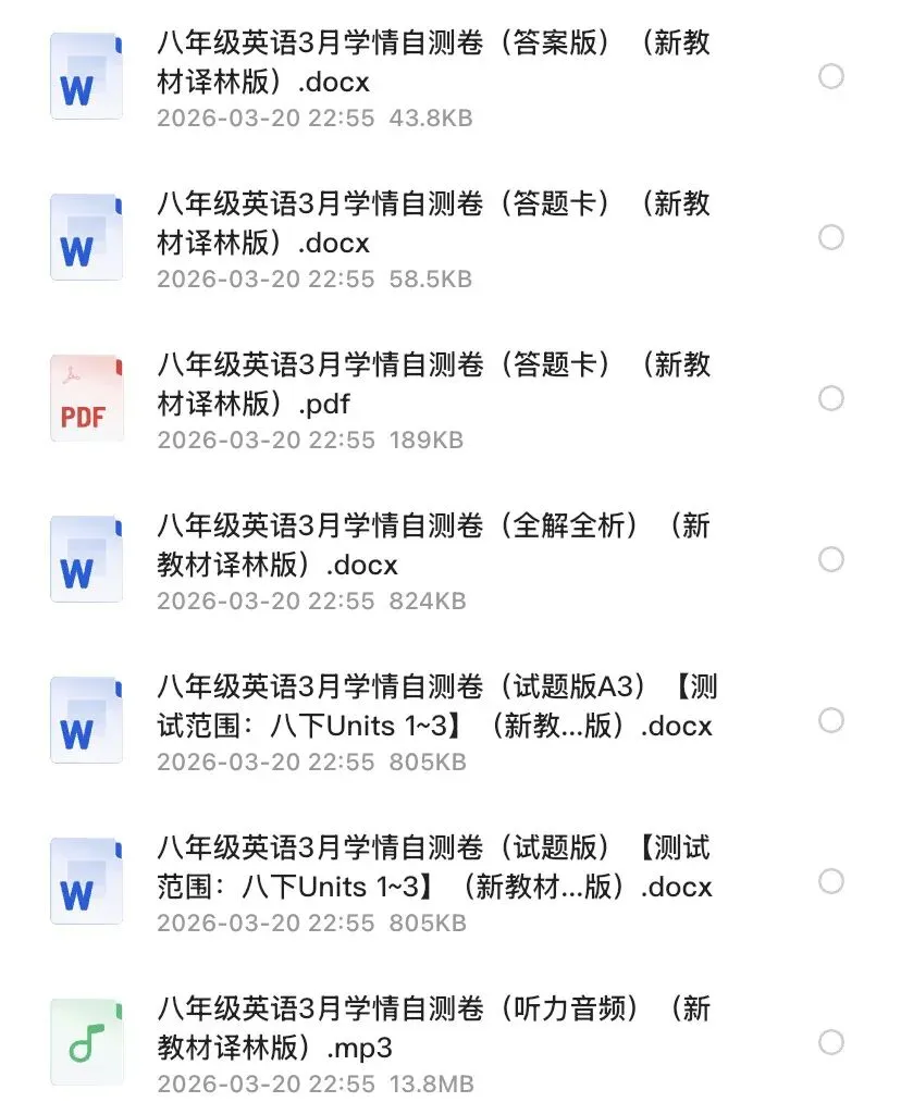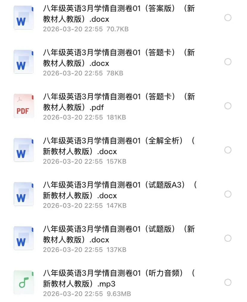 今天英语学习帮给大家分享的是「2026春多版本《第一次月考试卷》八下英语(人教版+外研版+译林版+北师大版+冀教版+沪教版+仁爱版+鲁教版)」,试题+听力+答题卡+答案解析,配套齐全,电子版可下载,记得右下角点赞👍在看❤️~