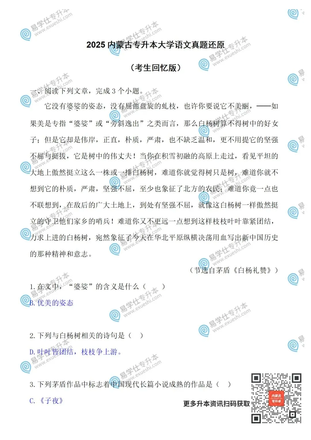 2026年内蒙古专升本考试进入倒计时,今天小编就为大家整理了2025年内蒙古专升本公共课的真题+答案,真题根据考生回忆还原,一起来看看吧~