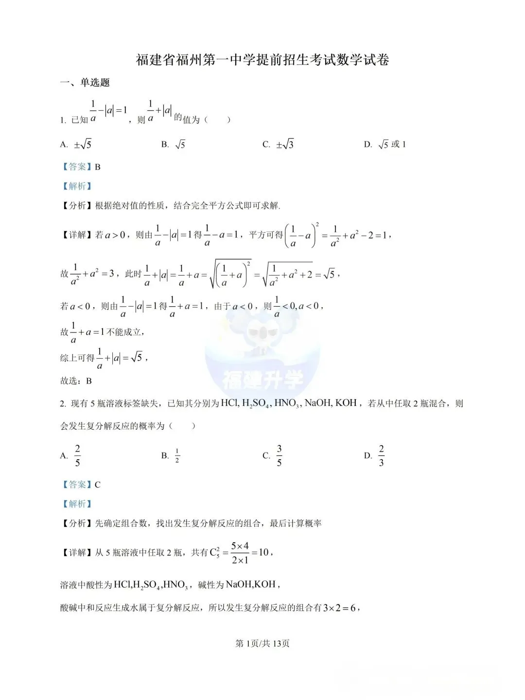 自招真题01 | 福州一中