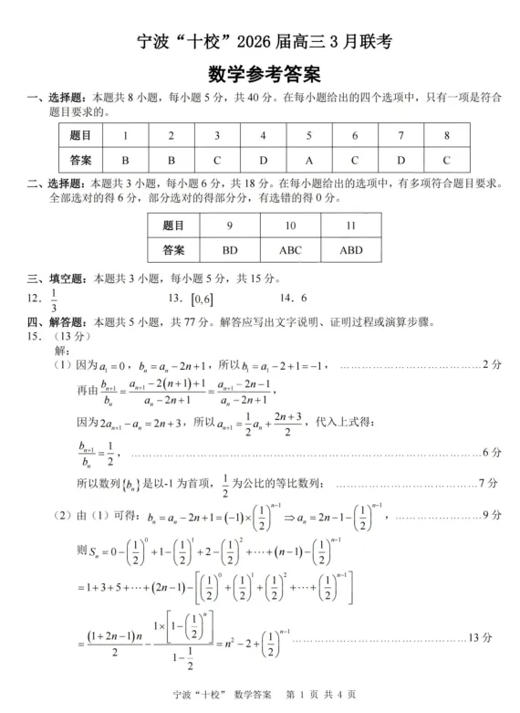 数学答案-宁波十校2026届高三3月联考.pdf