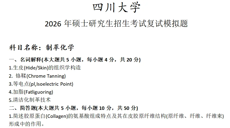 >四川大学制革化学考研复试真题模拟