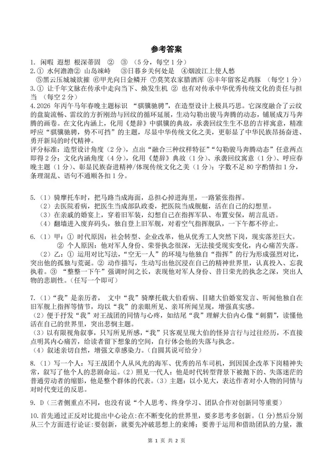 试卷分享:宁波“十校”2026届高三3月联考英语试卷