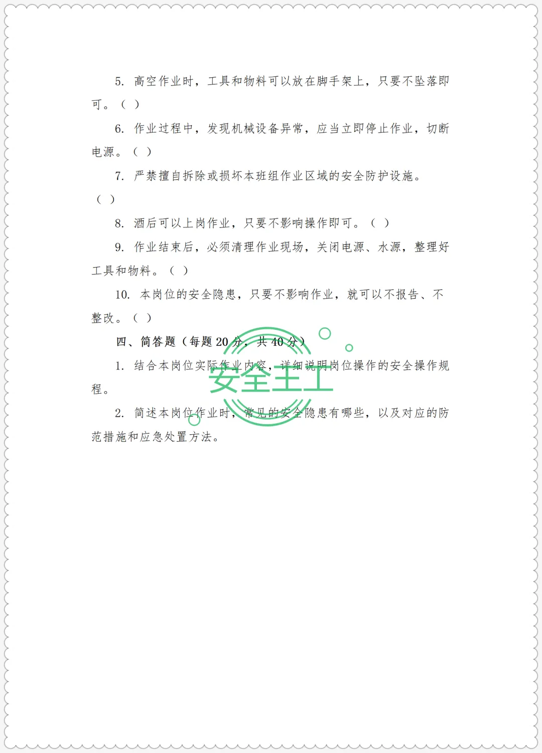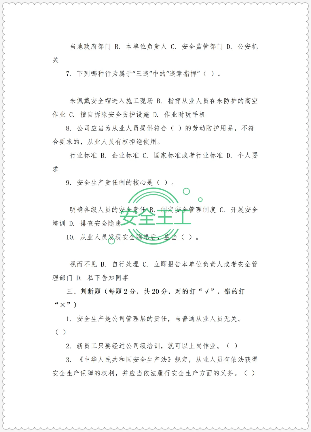 路桥施工新员工三级安全培训试卷(公司级+项目级+班组级)及答案