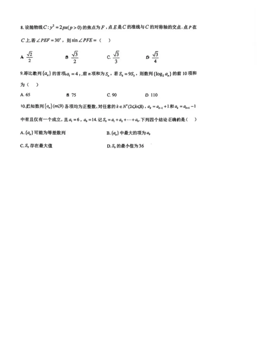2603宁波十校高三联考数学试卷及答案