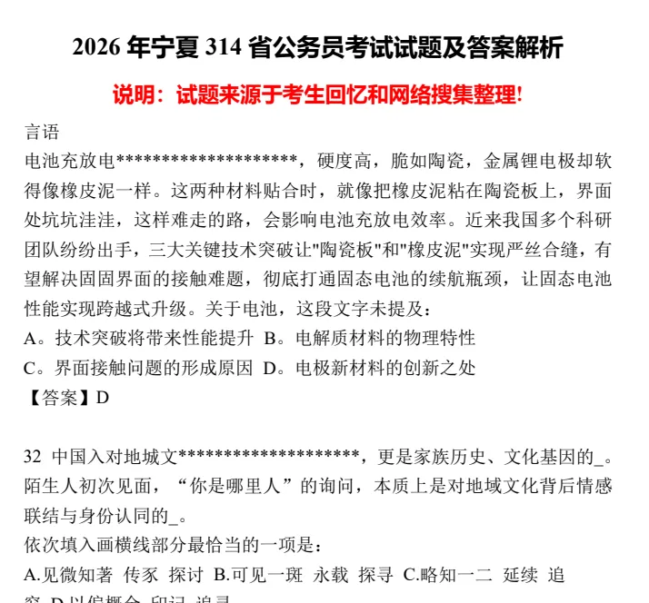 「13、2026年3.14【内蒙古】省考真题+答案」