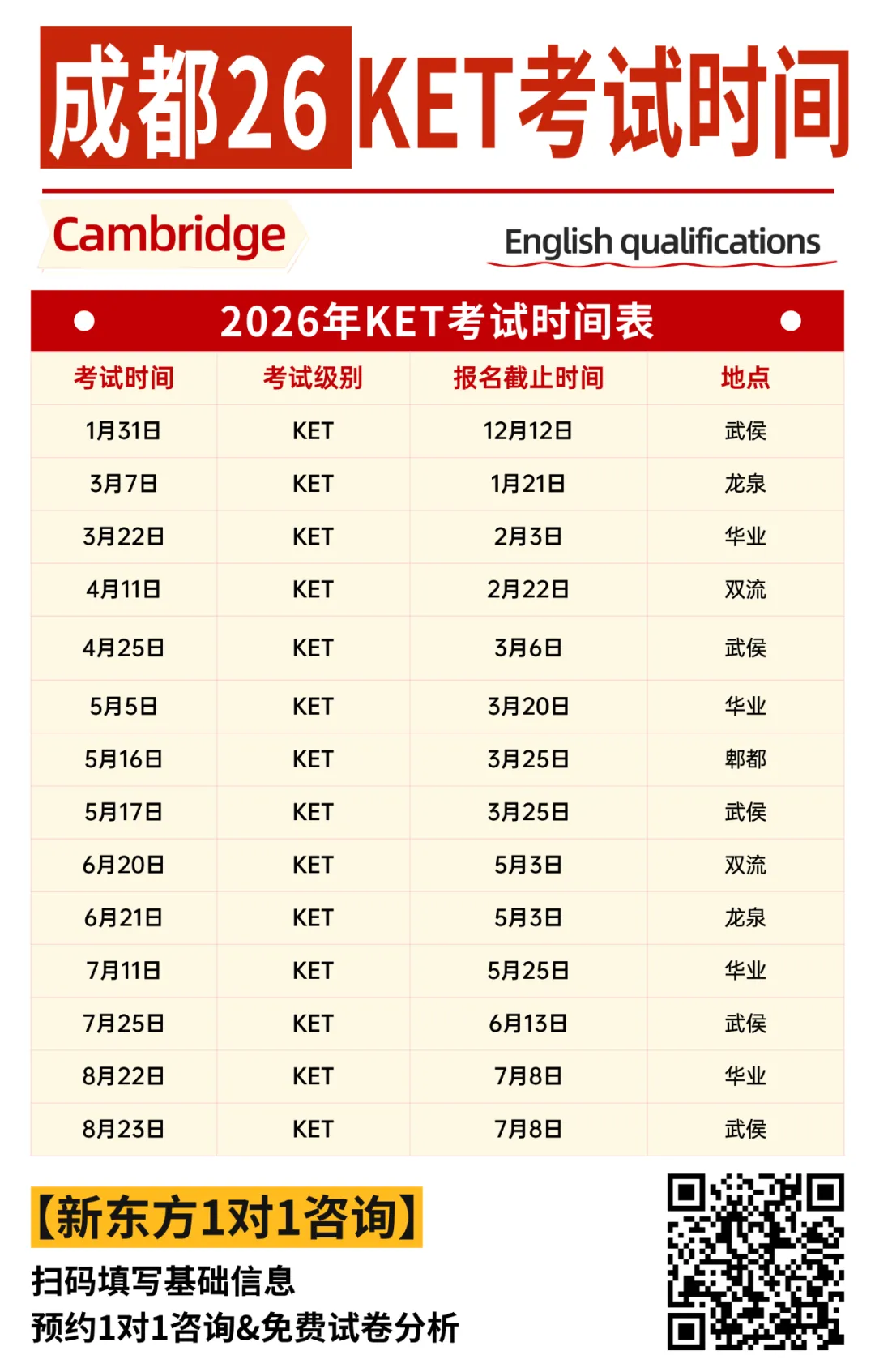 ✅ 2026 成都 KET 考试时间: