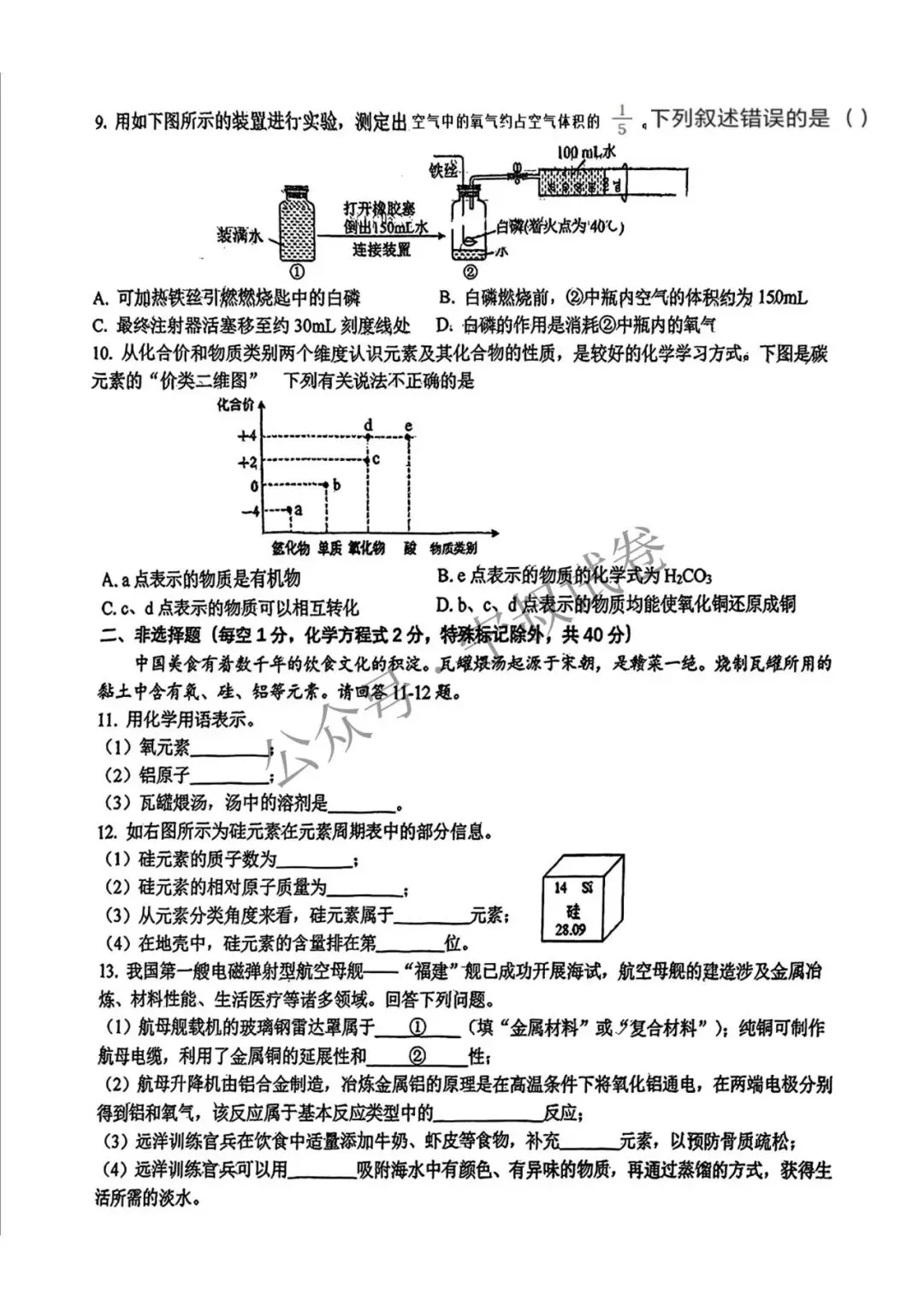 2026.3师大明珠中考一模化学试卷