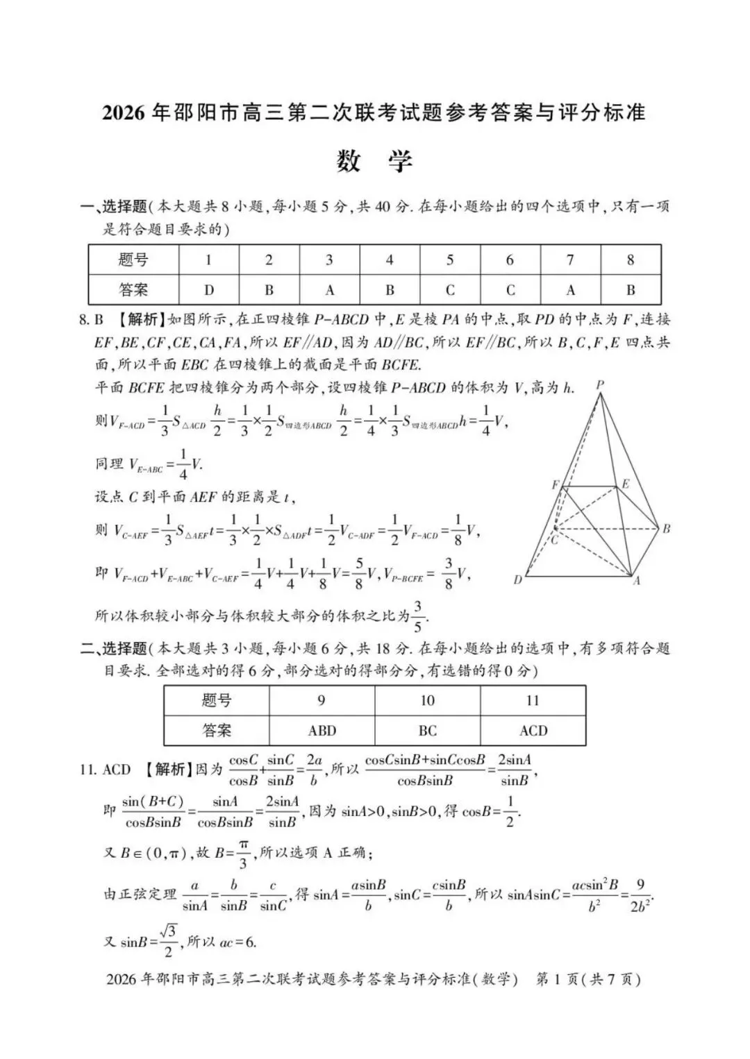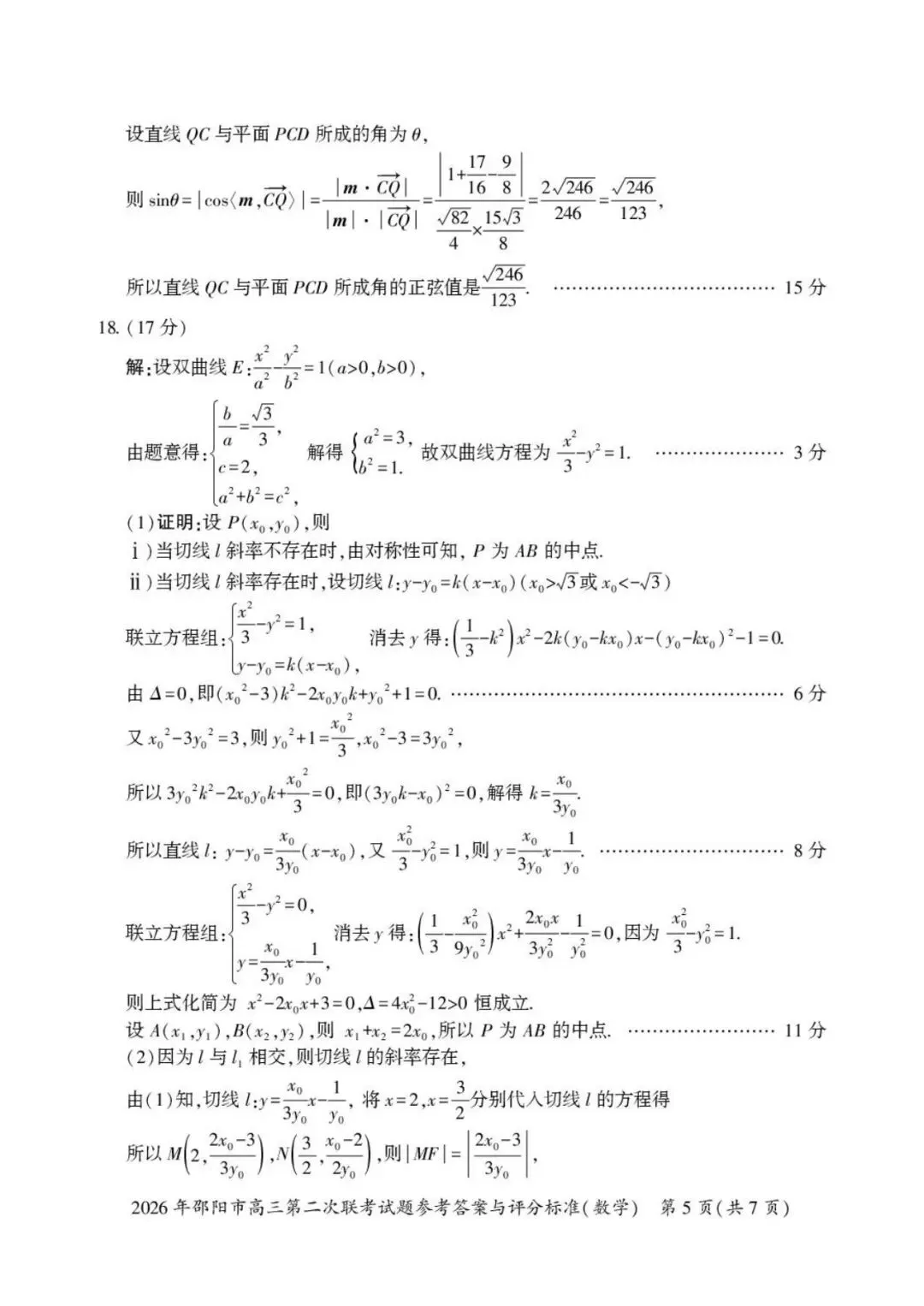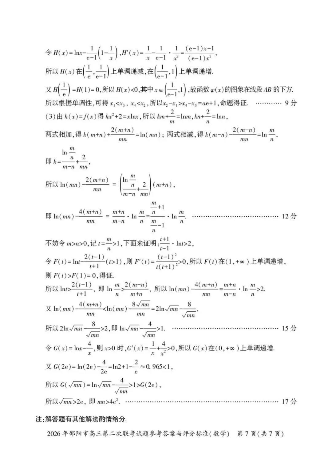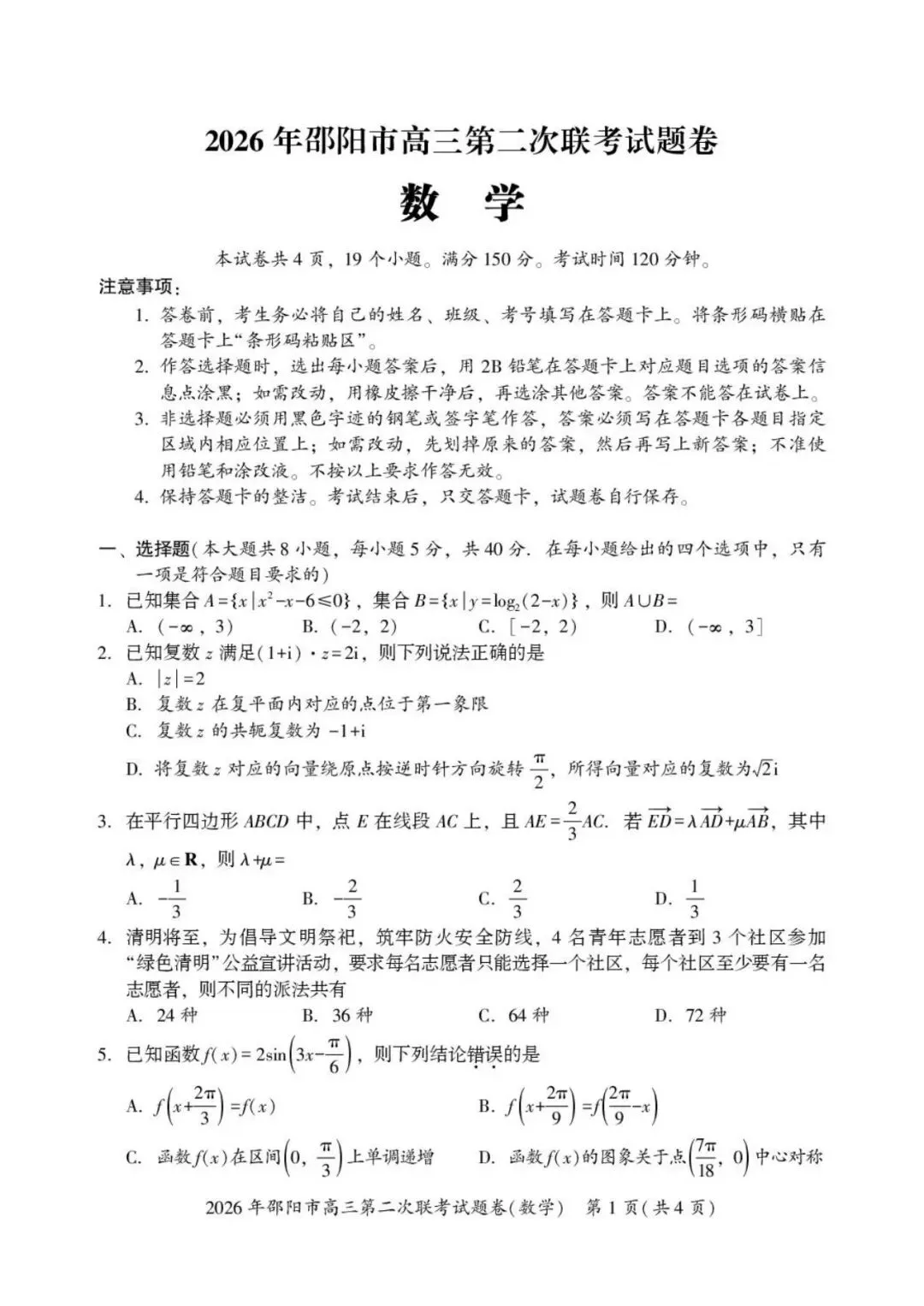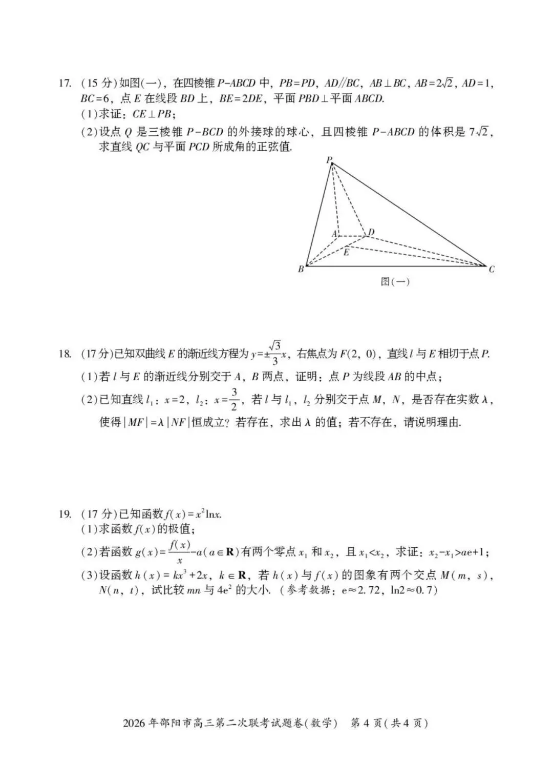 >2026年邵阳市高三第二次联考试卷及答案