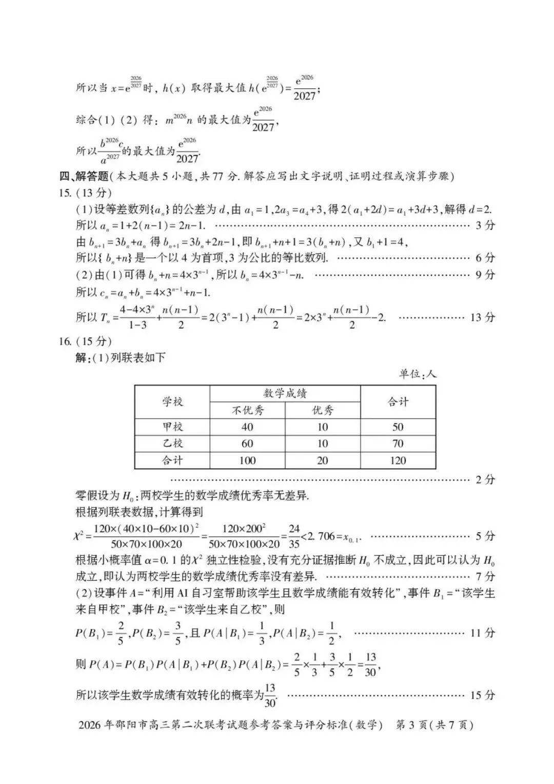 2026年邵阳市高三第二次联考试卷及答案