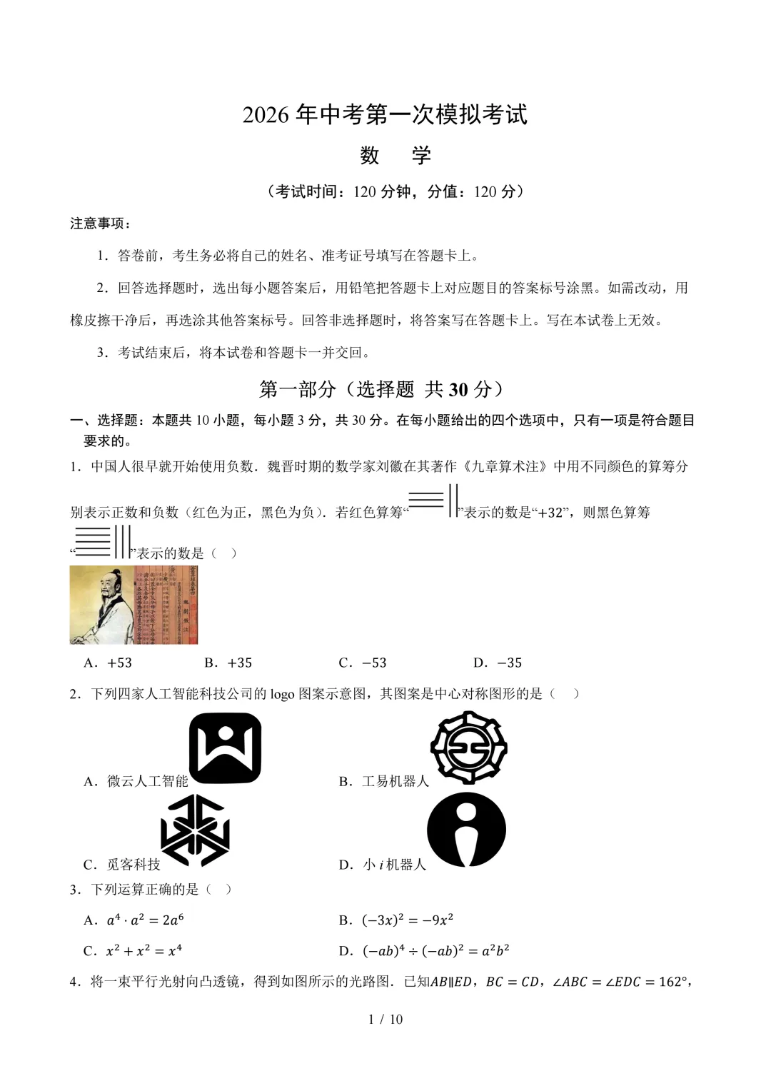 【山西中考】2026年山西中考第一次模拟测试题(多科目)