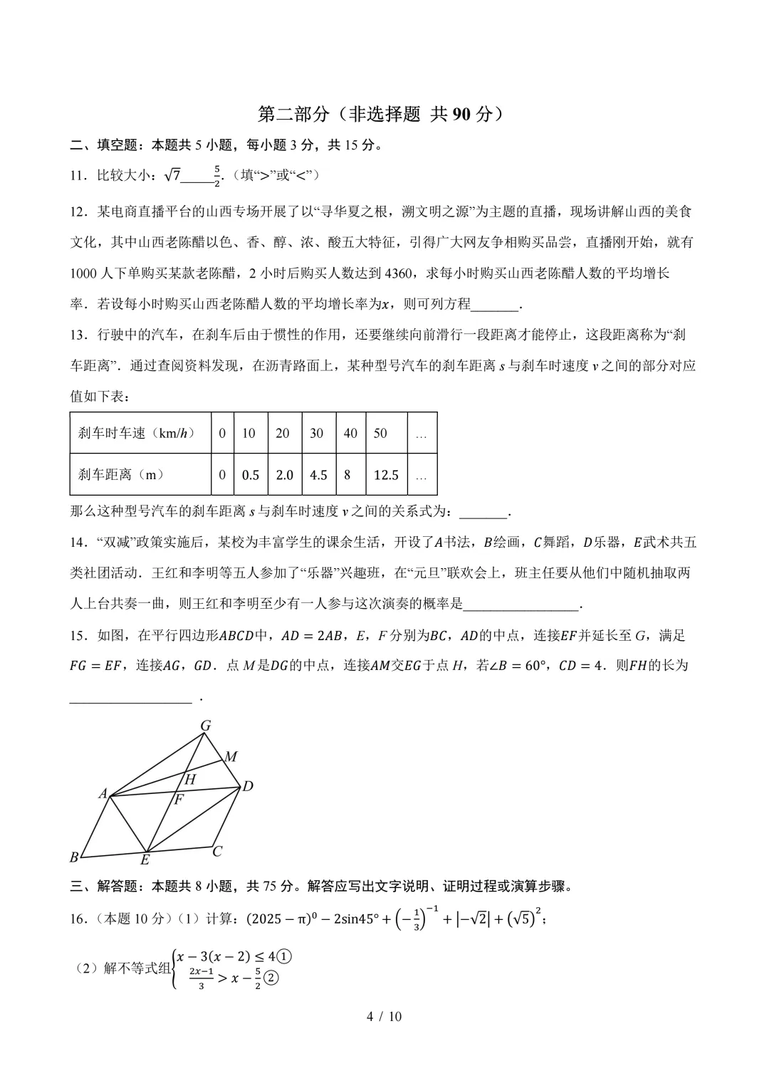 【九年级数学】2026山西中考一模数学试卷分享1