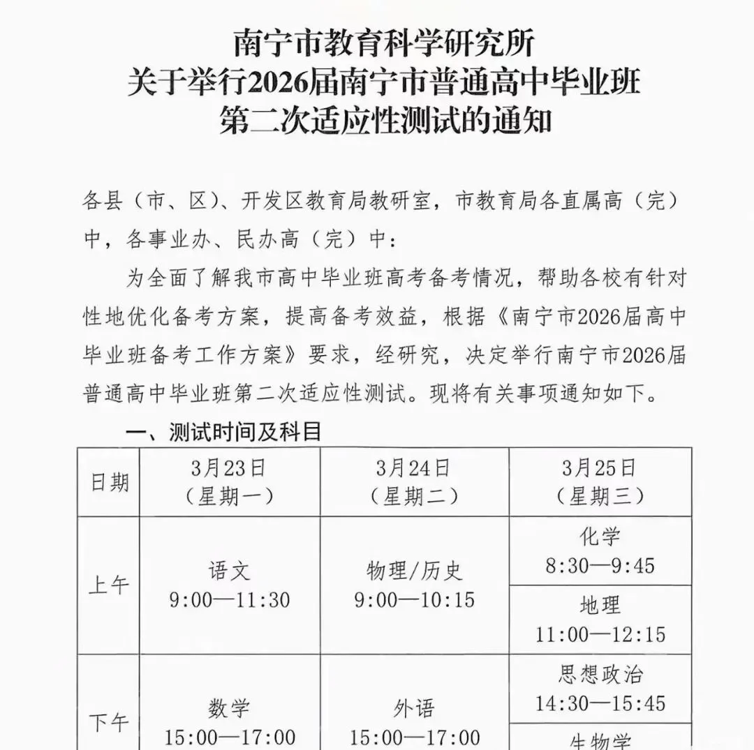 当前位置:首页>考研真题>【试卷+答案】3月23日南宁市2026届高三第二次适应性测试(二模)全科汇总!