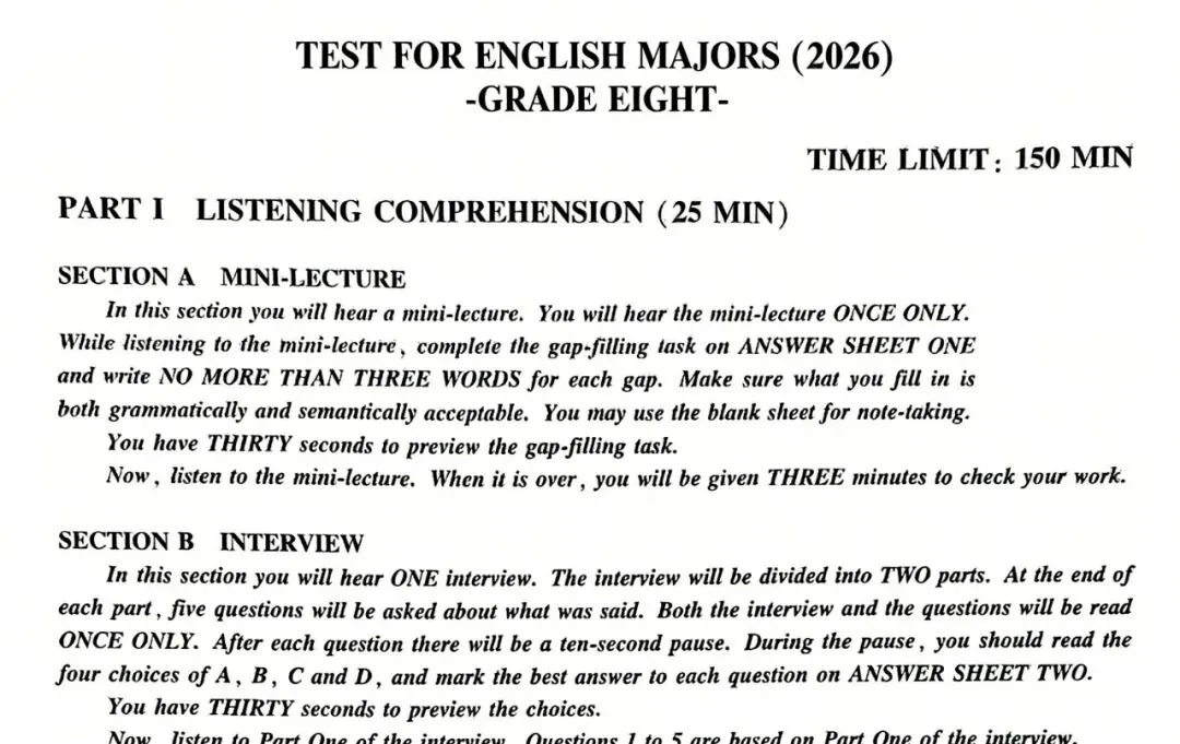 3月21日上午,2026 年英语专八(TEM8)考试考完了,同学们考得如何呀?英语专八考试(TEM-8)是国内英语专业学生的高水平测试,旨在全面评估其英语综合应用能力。