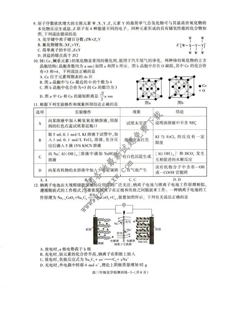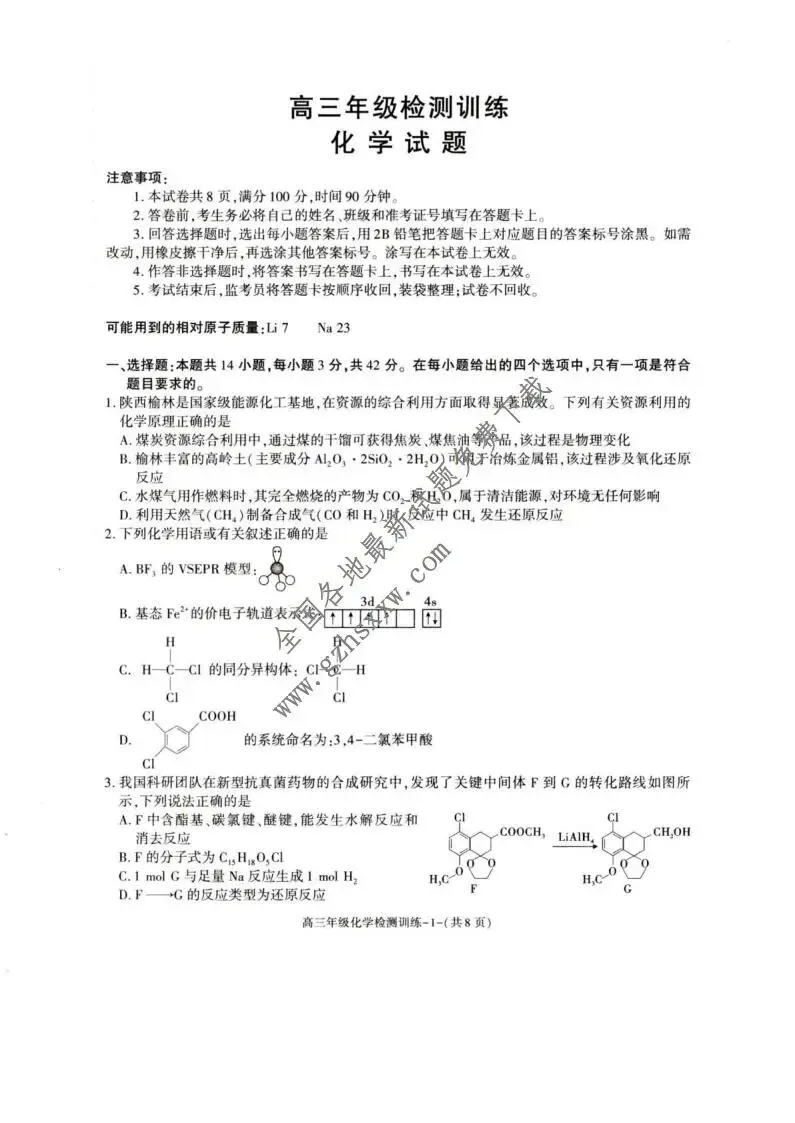 >《高中试卷》陕西省榆林市2026届高三上学期1月期末检测训练化学(含答案)