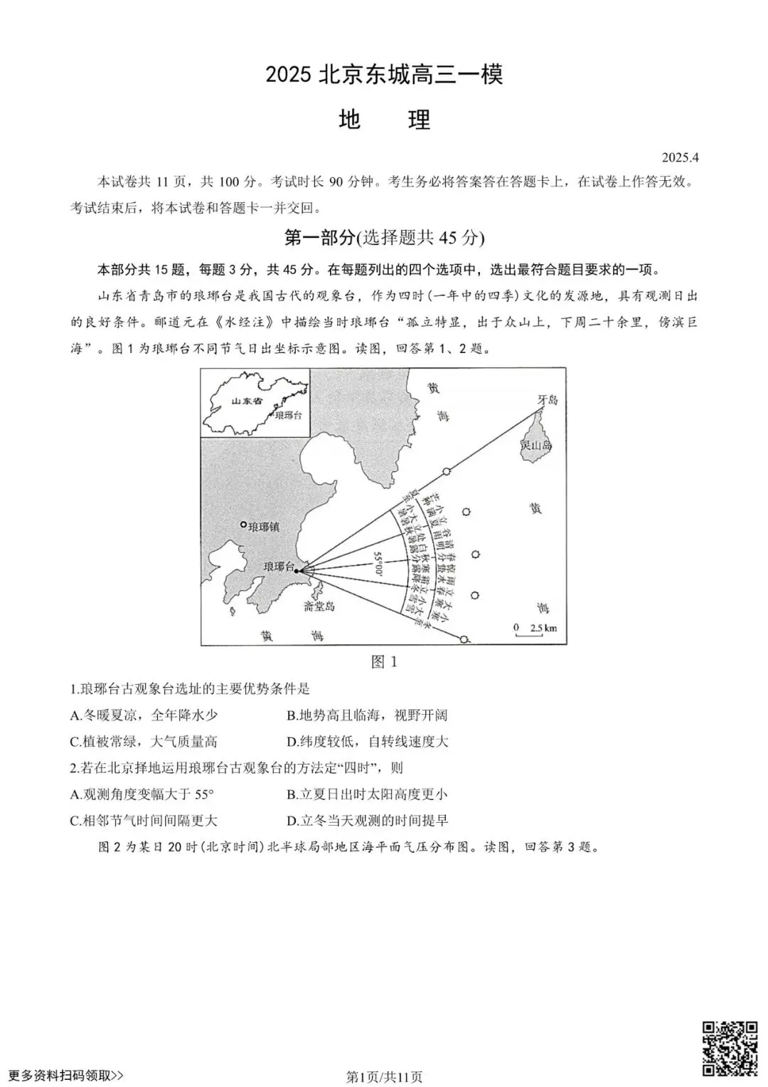 今天给大家分享的是2025北京东城高三一模地理试卷(含答案),其他区域或学校的学生都可以练一练。近期会持续分享,欢迎大家多多关注,也可以把我们分享给更多人哦。