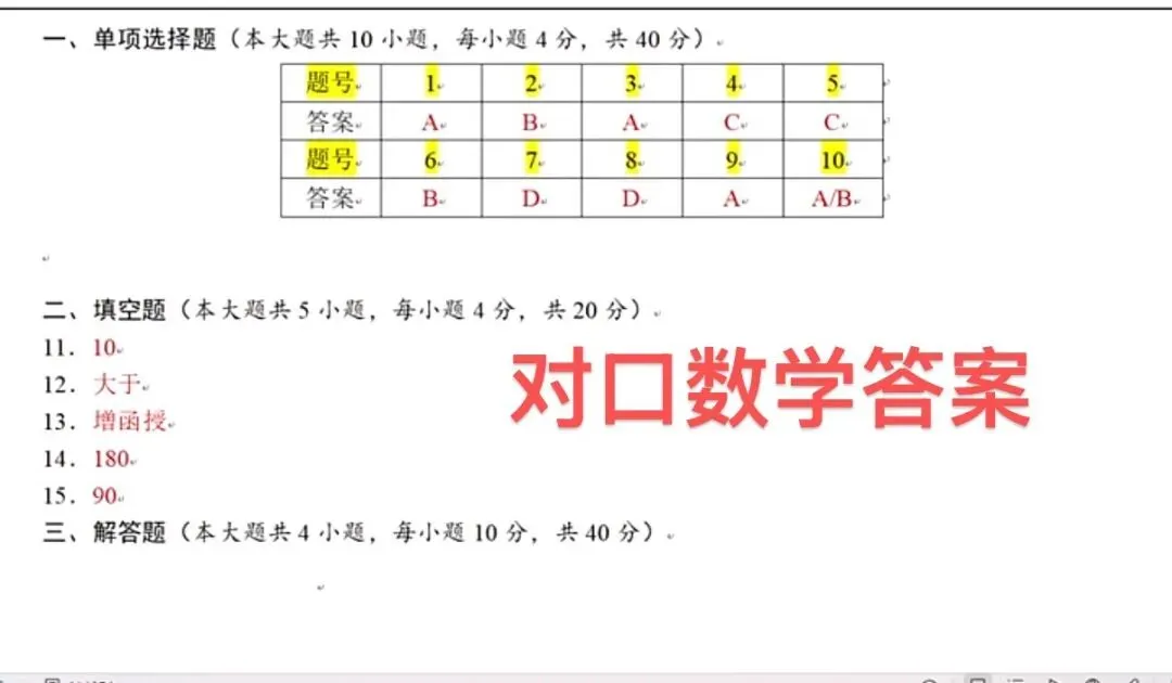 对口语文和数学试卷答案