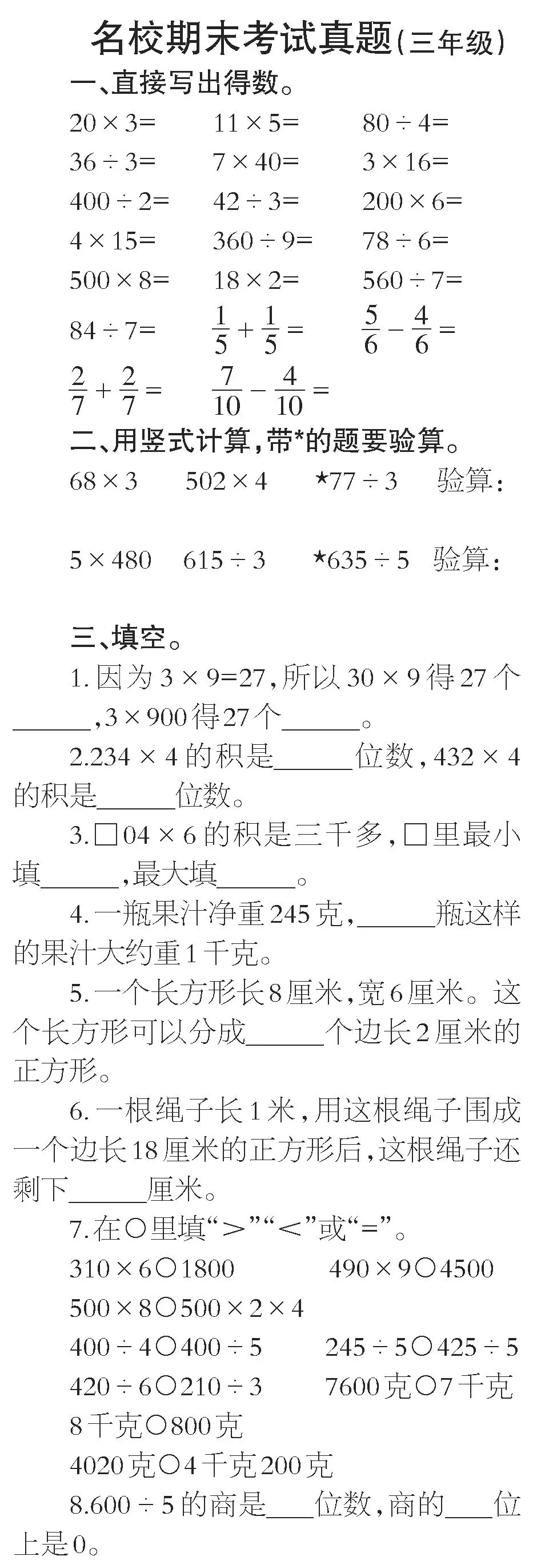 这次小数报给你们带来“期末专题”——名校真题试卷