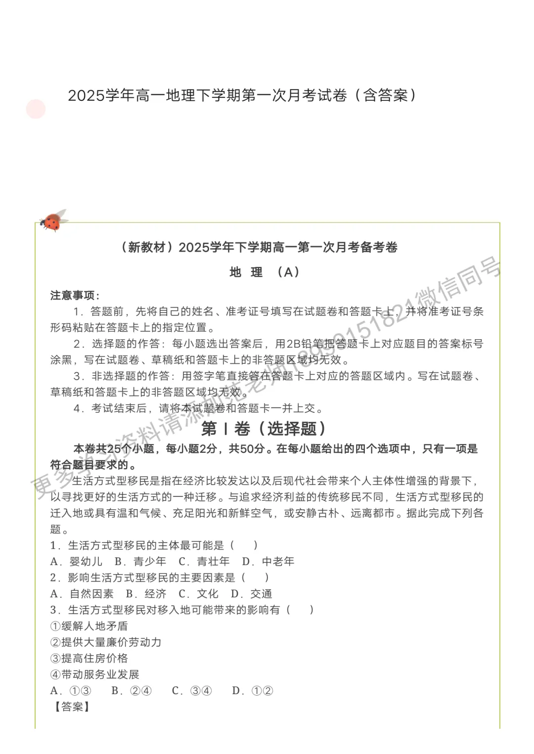 >高一地理下学期第一次月考试卷附答案解析