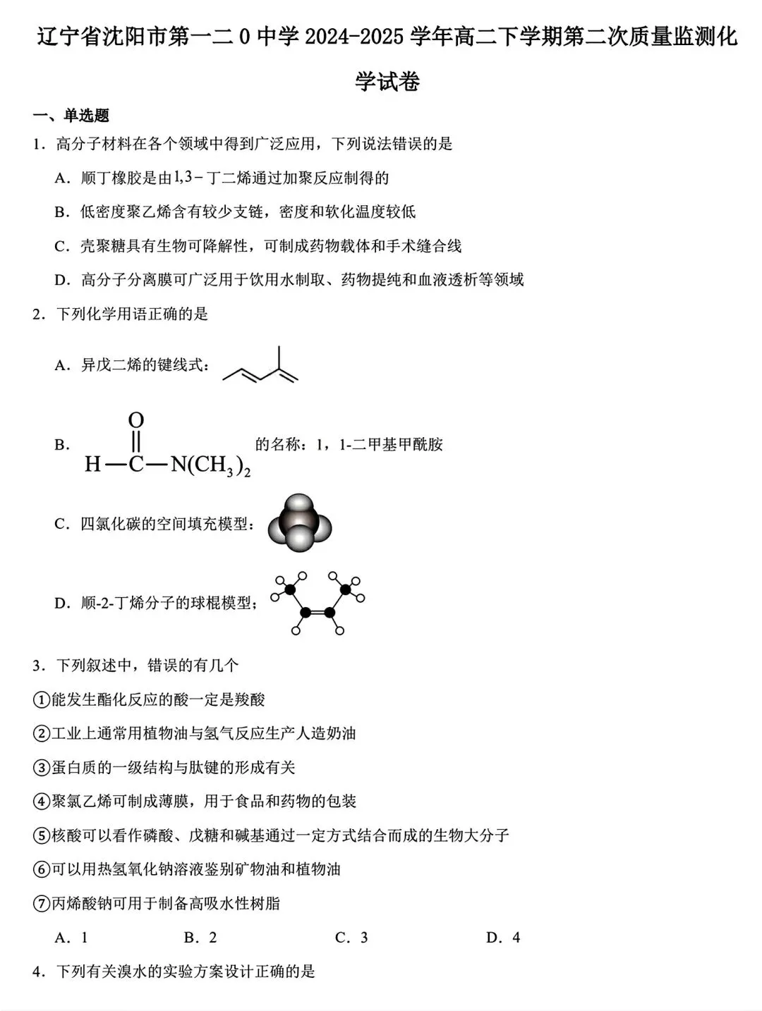 2024-2025沈阳120中学高二下4月化学含答案(无水印).pdf