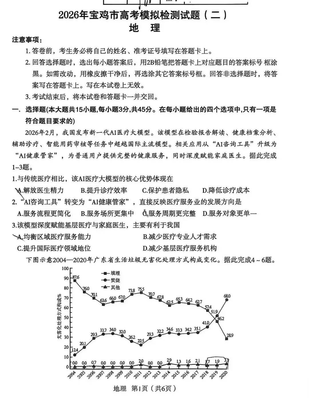 2026陕西宝鸡高考模拟检测试卷二 地理试卷