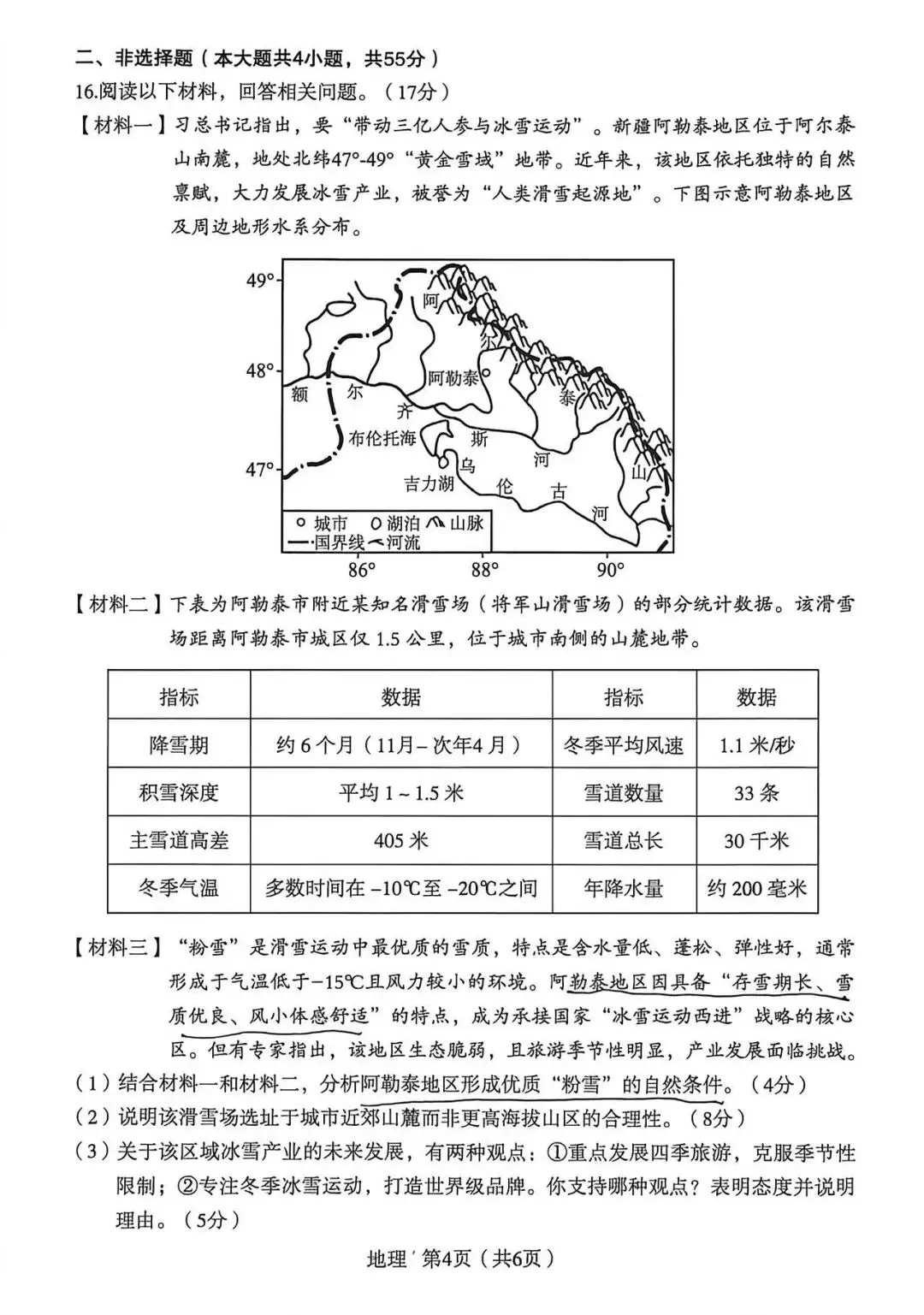 【试卷/高二下】2024-2025沈阳120中学高二下4月地理(含答案)可下载