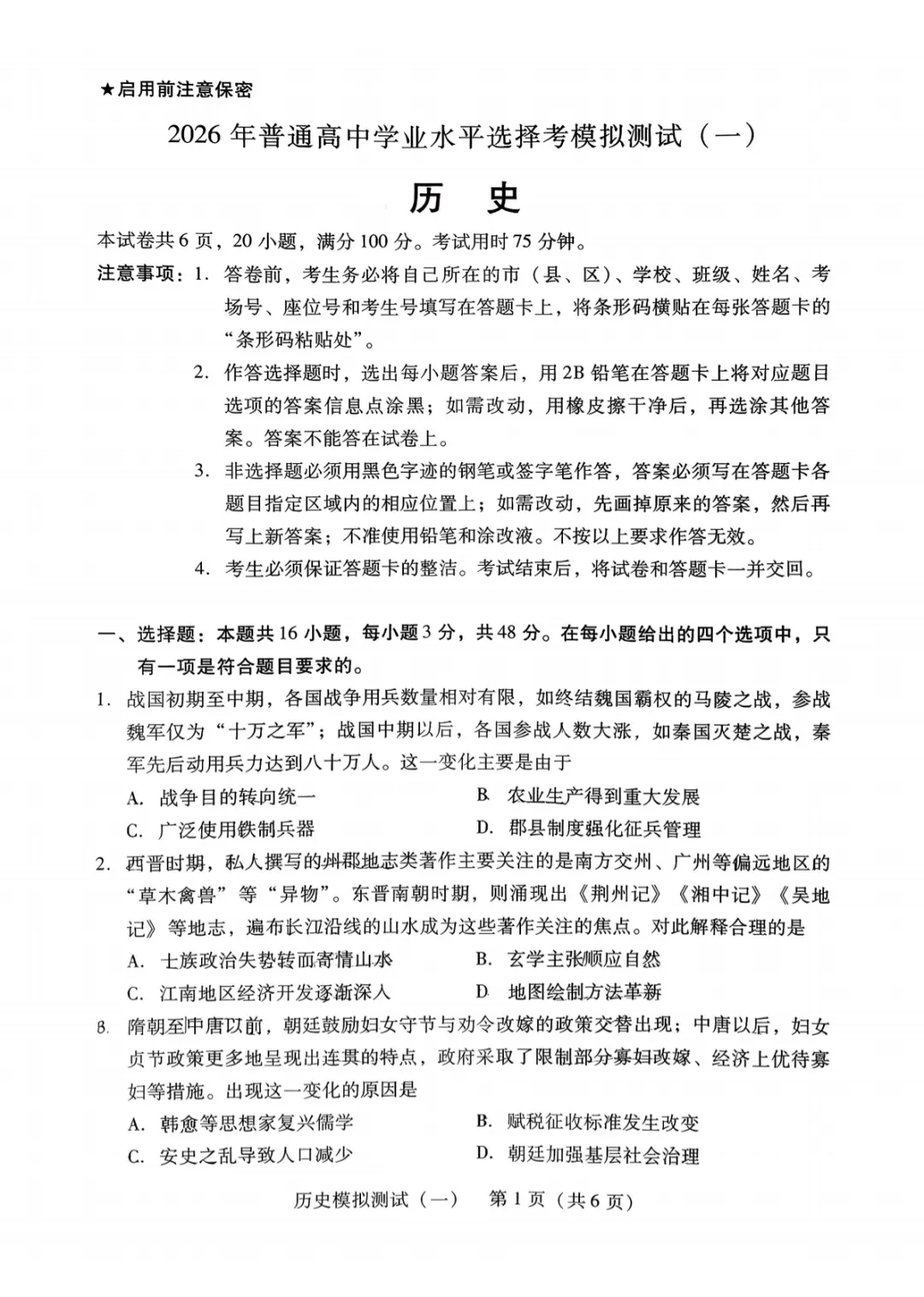 2025北京东城高三一模历史试卷(含答案)