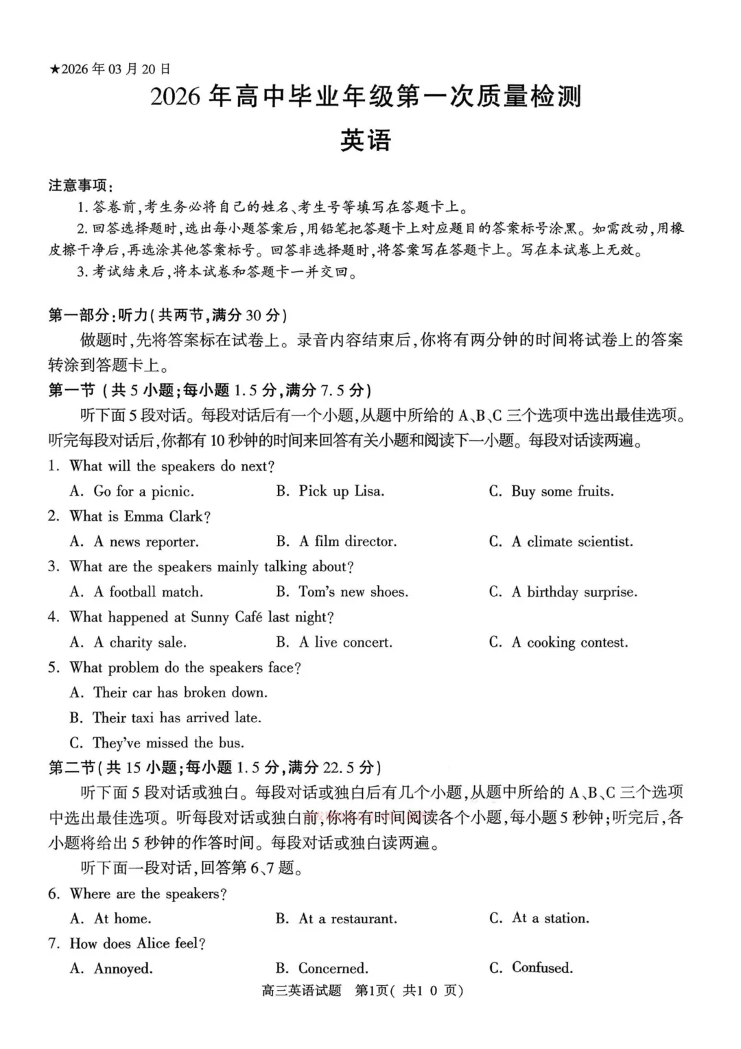 2026年3月锦州八中九年英语零模试卷+答案