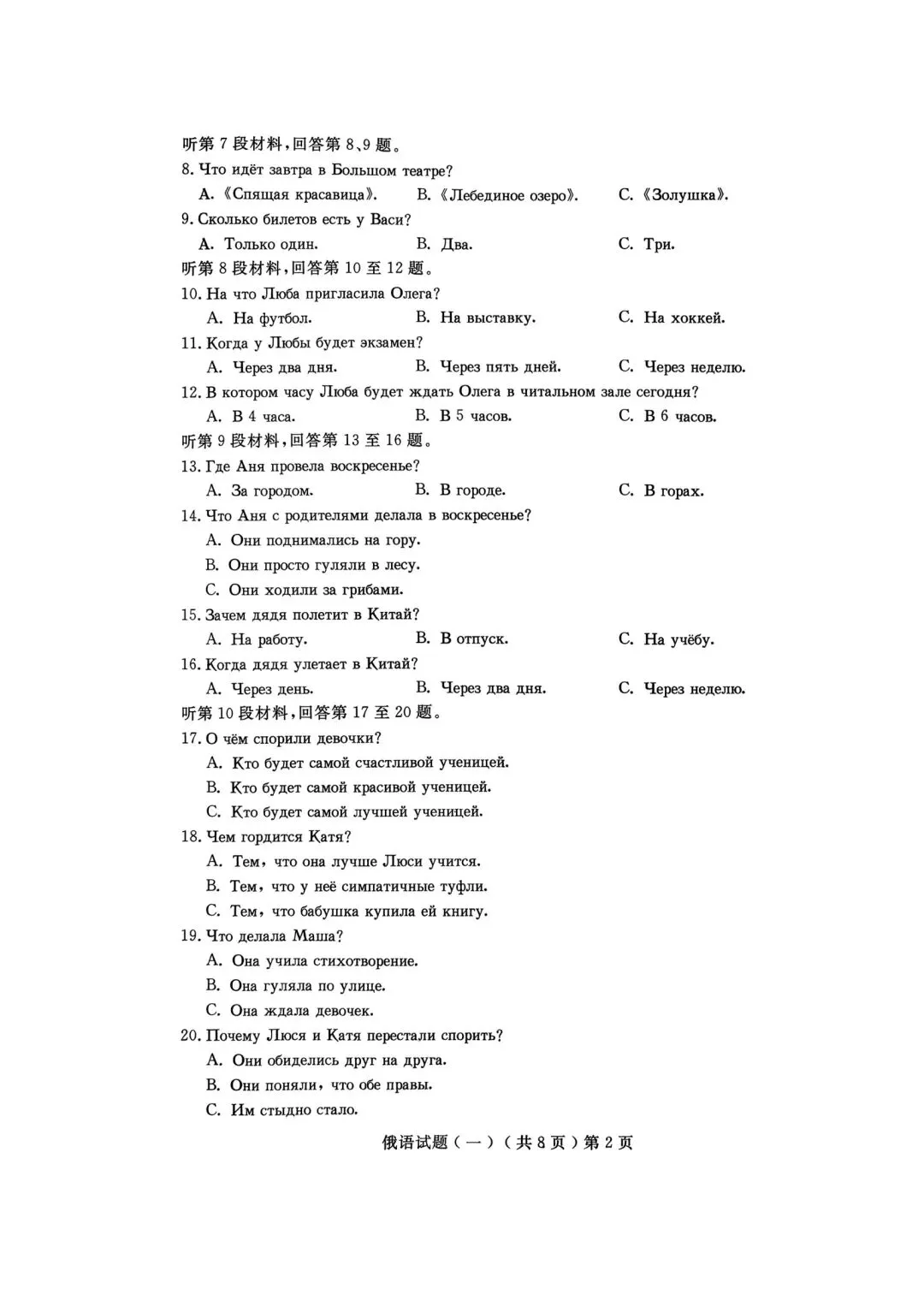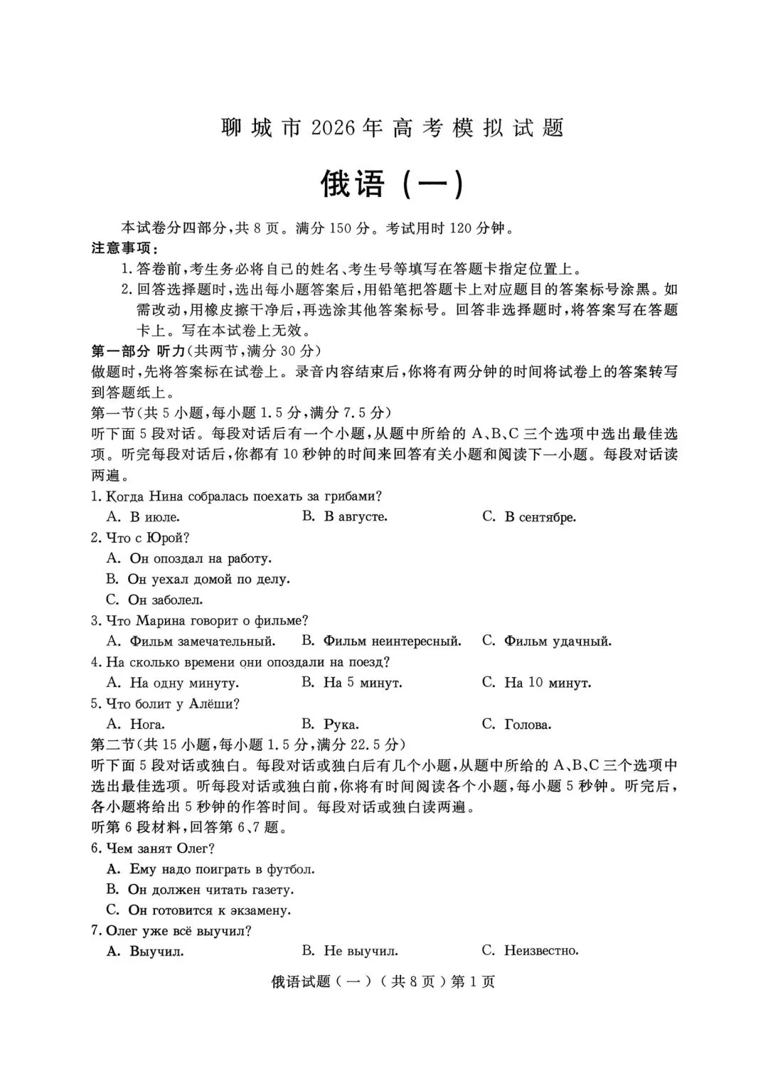 2026届高三3月山东聊城市俄语试题(听力音频,答案无偿分享下方有网盘链接直接下载)