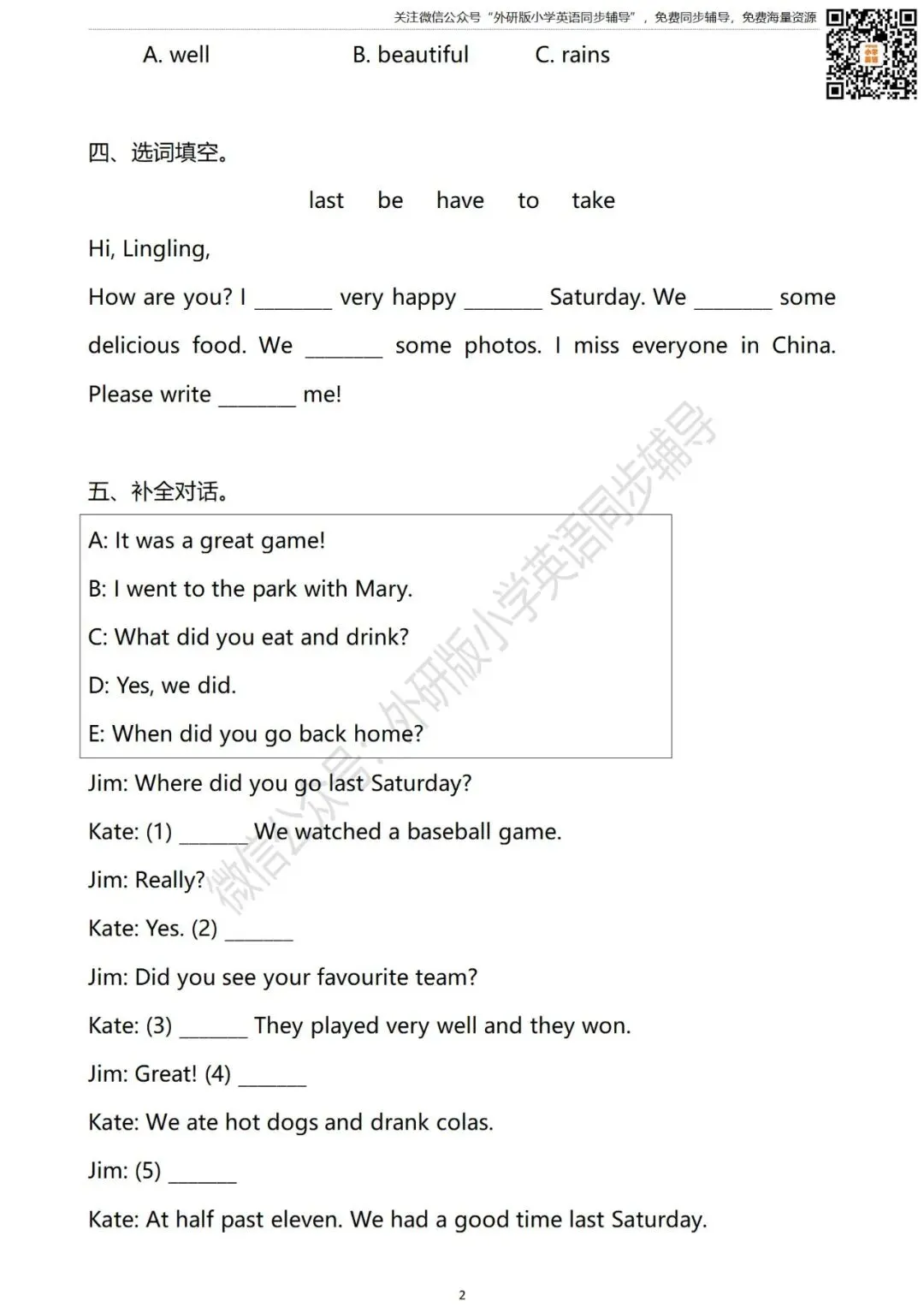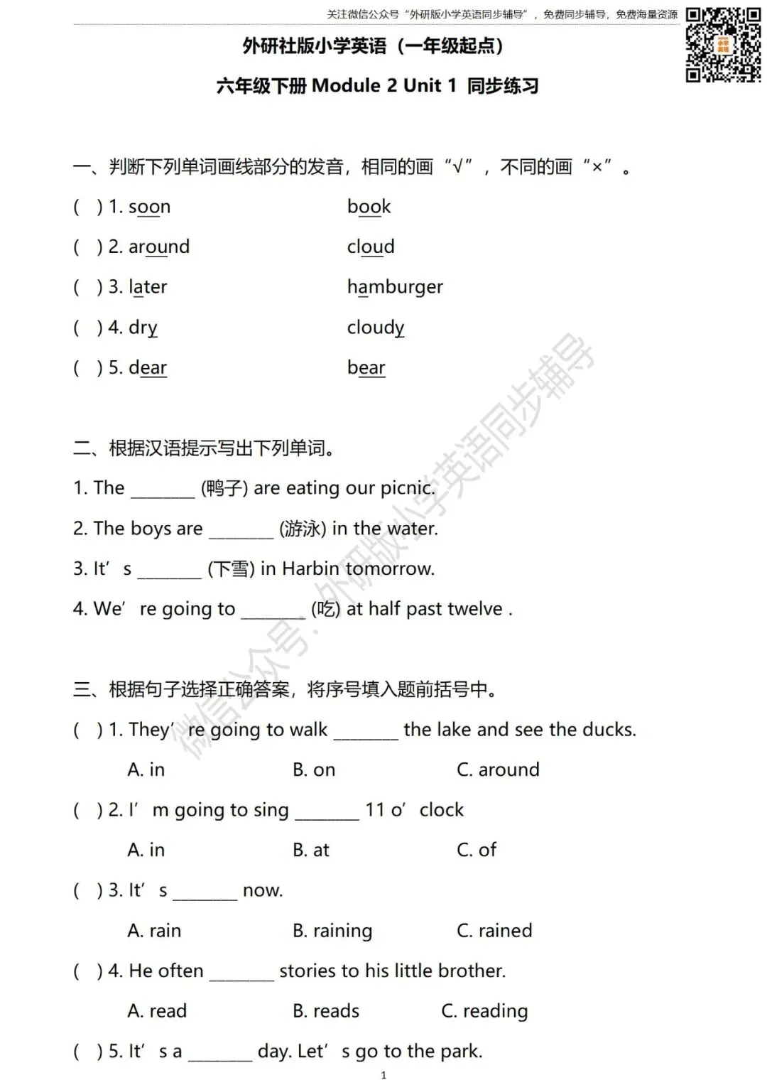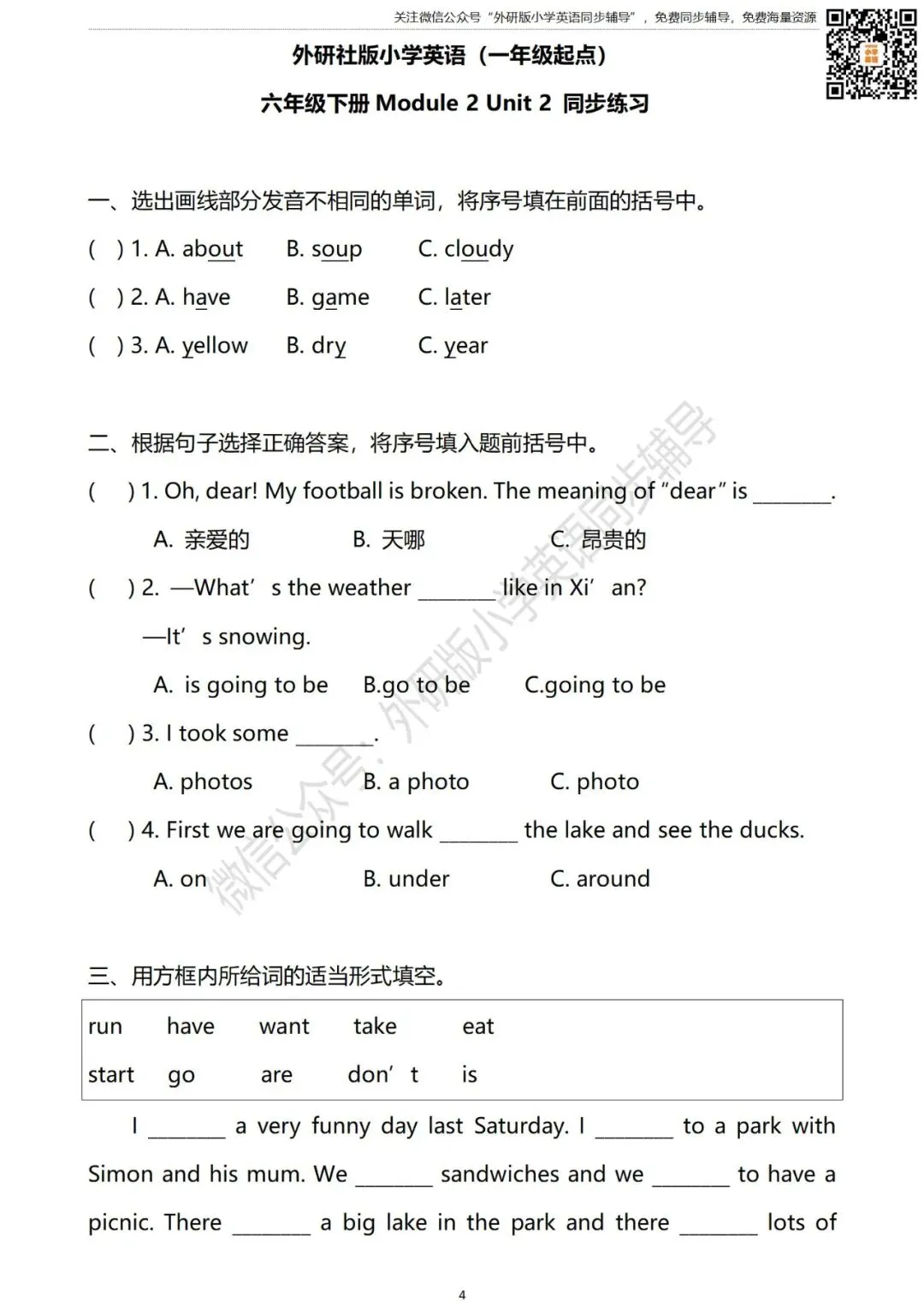 进入“外研版小学英语同步辅导”微信公众号