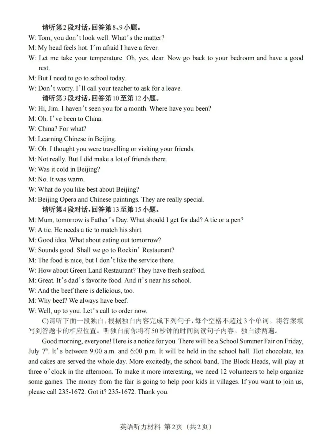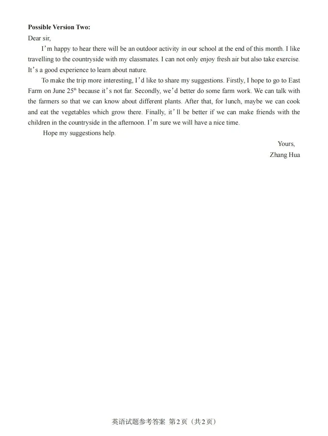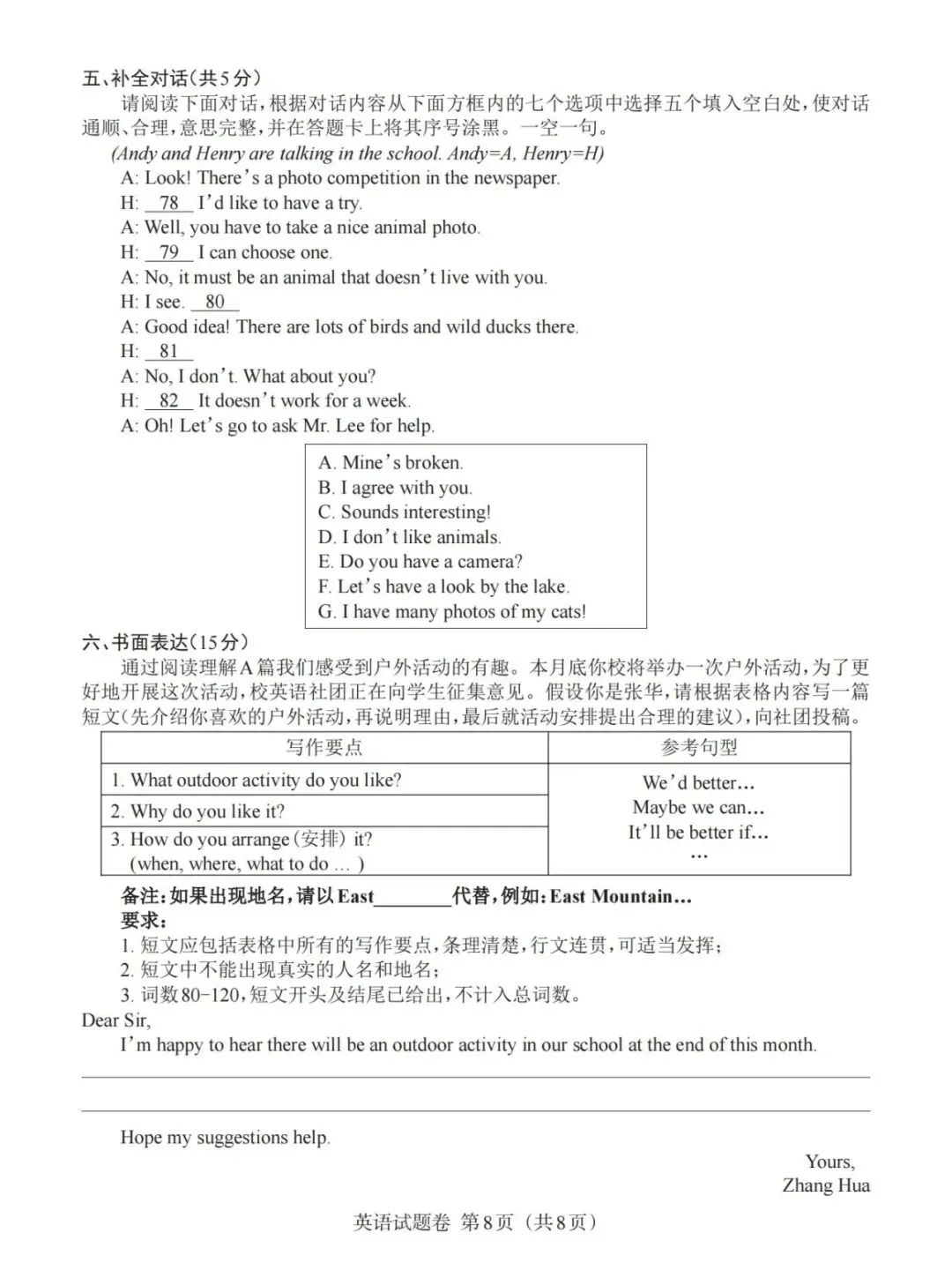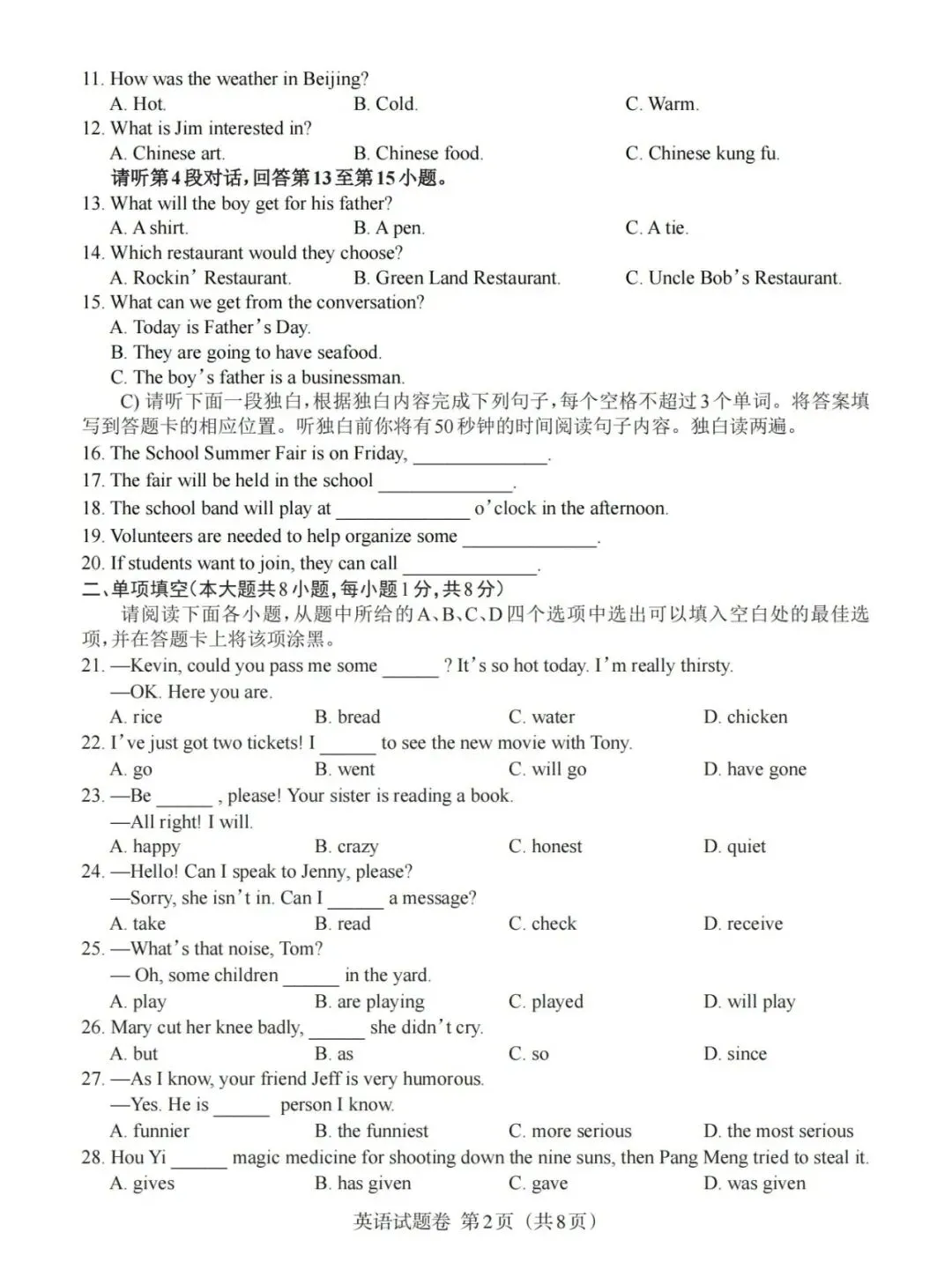 >2023年江西省初中学业水平考试英语真题卷及参考答案