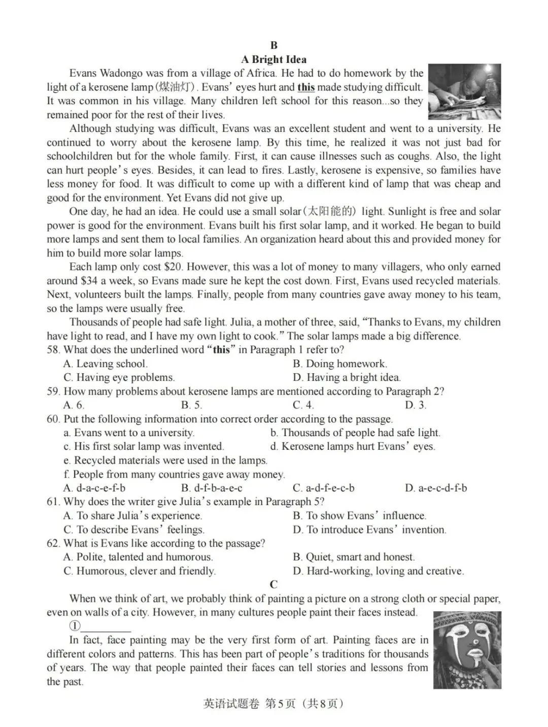 2023年江西省初中学业水平考试英语真题卷及参考答案