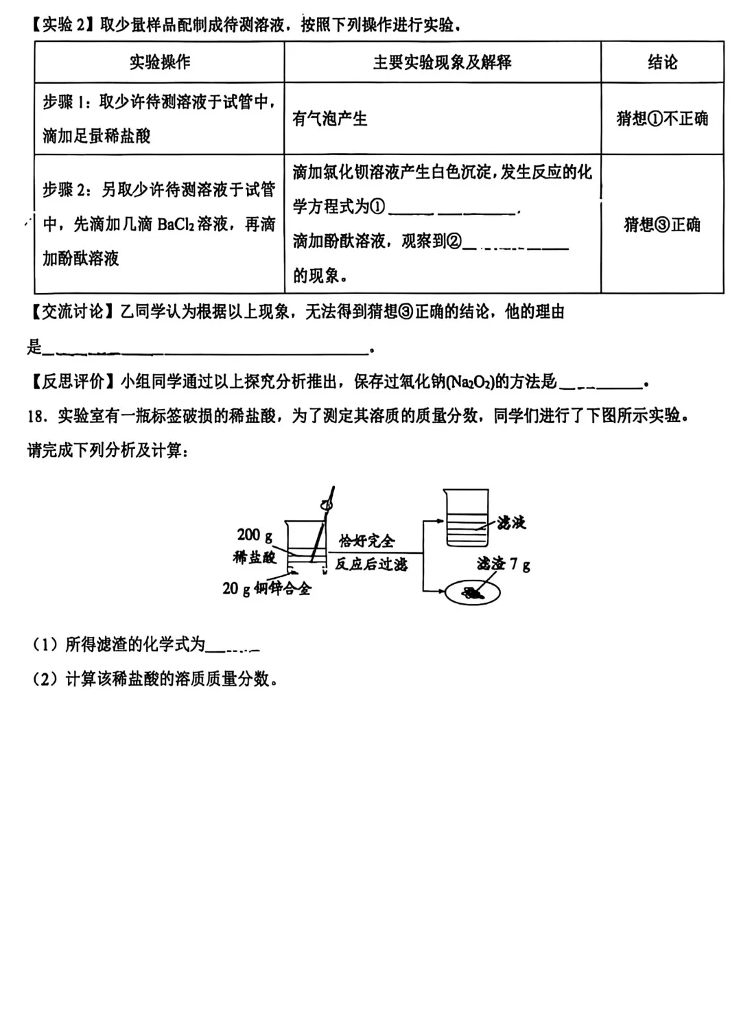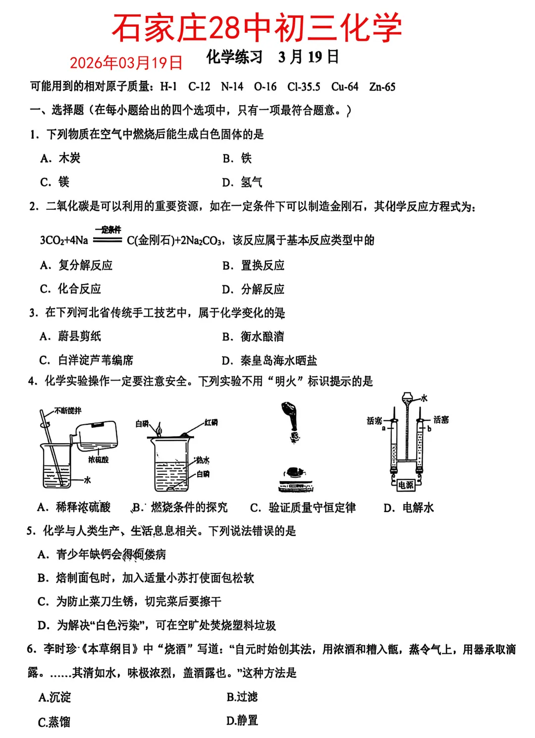 2026年03月19日 28中 初三化学试卷